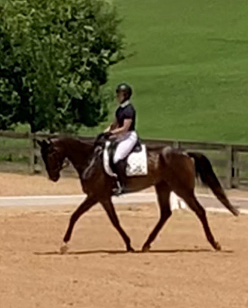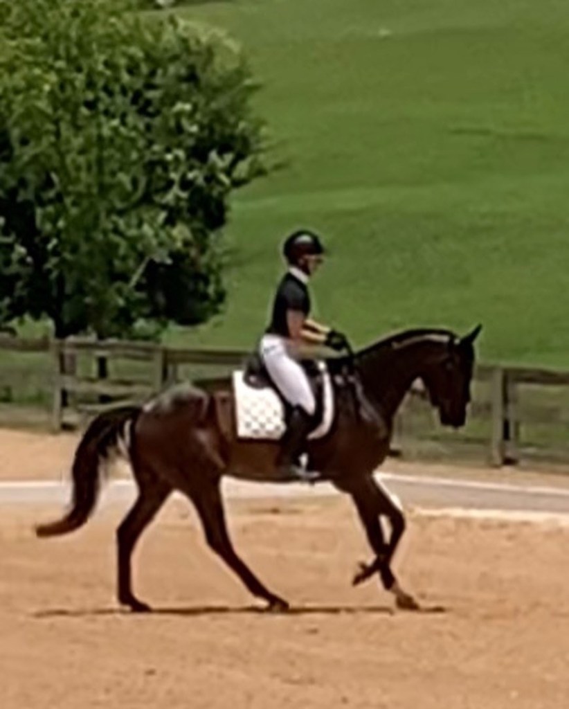 Fuck yeah, Noodle! He was out in front by a 3 point margin in a class that ranged from his 23 all the way up to a 45. The judge loved him for sure, and we will 100% take that and run with it. There was still room for improvement, so it’s kind of fun to see glimpses of some real potential. Imagine how good he could be when he’s stronger and really coming through his body more! It’s pretty exciting. But also kind of intimidating for me, because I’ve never had a horse that was even capable of a score like that, and now I have to learn how to ride this creature at some point LOL. Luckily Megan said that despite all his monkeying around in the warmup he’s actually super easy to ride in the ring, so hopefully he stays that way.