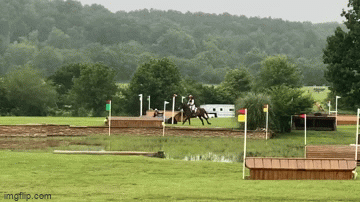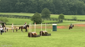 There was a decently long stretch before fence 2, so she revved the motor a bit and picked up the pace, which he was more than happy to do. He pinged right over 2 on a bit of an angle and then made the turn back around to 3 (for some reason a few horses thought that fence 3 was definitely a horse eater, not sure why) with no issue.