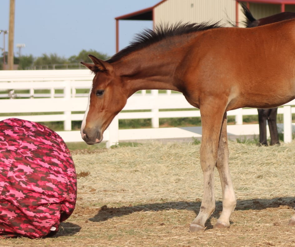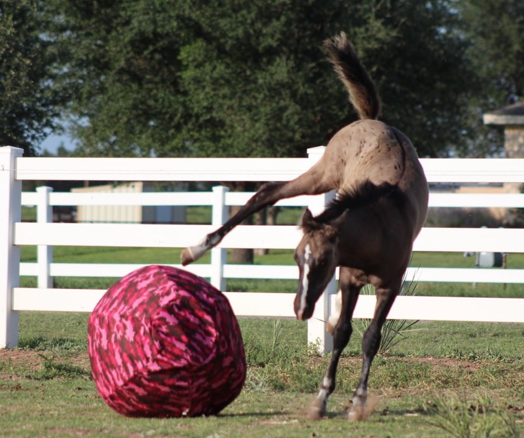 Although Teddy was quick to get in there, roll it away from the fence, and give it a piece of her mind too. The difference between the colt approach and the filly approach is pretty hilarious.