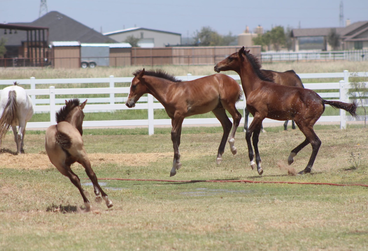 First and foremost – small announcement before we get started with the weekly dose of foal cuteness. We’ve gotten a lot of requests for WTW merch and thanks to our friends at Two Socks Designs we officially have a store for Willow Tree Warmbloods! There are a handful of basic items in there to start, and we can add more if there’s enough demand. You can also special order things if you’d like, the logo is on file, or you can get different colors by request. I also want to note that WTW is not making any kind of profit from any of this, we just wanted to be able to offer some logo stuff to those of you that have requested it, and support a great (woman-owned, Texas-based) small business at the same time. Cutting ourselves out as middle man also keeps the prices lower and orders moving faster. Fun fact – Sydney of Two Socks Designs owns Manny, from the WTW class of 2018. Gotta keep in in the family! Alright, on to the cute babies!