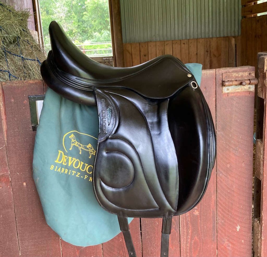 Devoucoux Loreak black monoflap dressage saddle size 18, on their regular tree with standard D3D pro panels. Regular flap length (16”). In very good shape and is a gorgeous saddle. Comes with the Devoucoux cover. I am happy to do local trials, but I’m not really set up to be shipping it back and forth for people to try. Happy to send whatever pics or videos you may need. Asking $2000