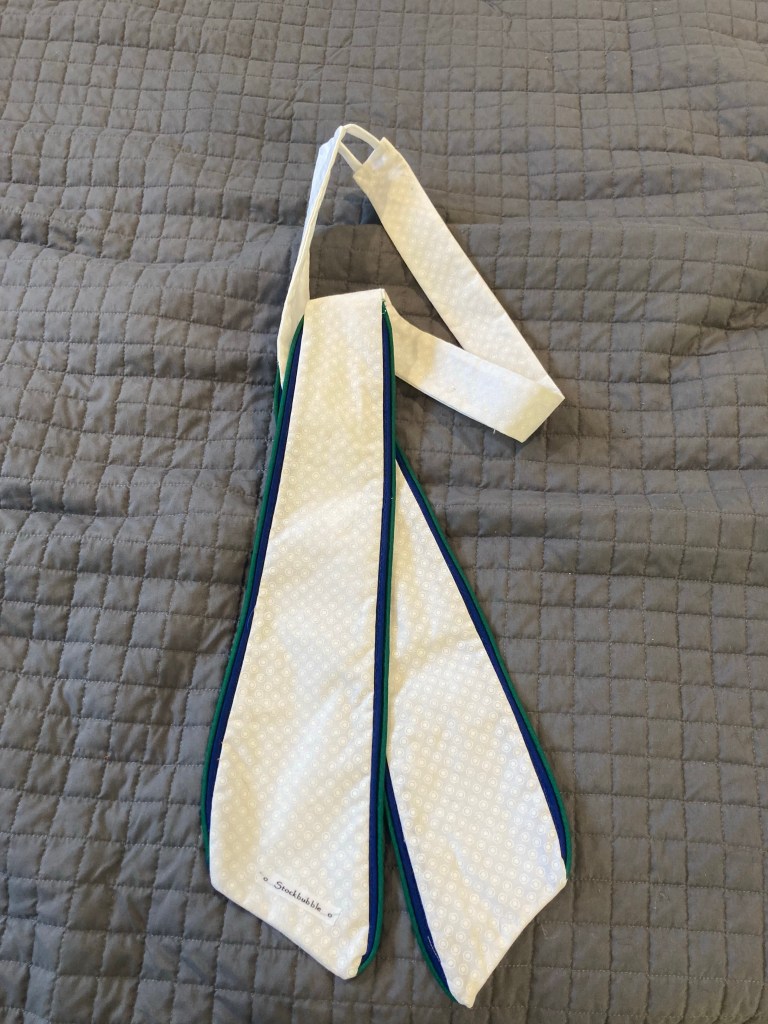 Stockbubble stock tie, white tone on tone print with double piping in navy and hunter green. Never worn, was made custom. I have no idea why I have so many damn stock ties considering I hate them and refuse to wear them until someone makes me. I’ll keep the unicorn one but the rest are just taking up space, so… $25