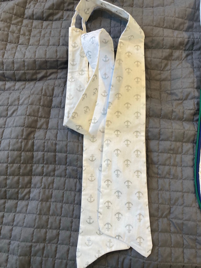 Stockbubble stock tie, white with silver glitter anchors. Worn twice at most. $18