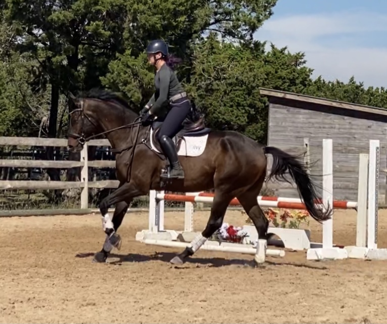 And boy, my god, is he ever different from Henry over fences. Ok they’re opposites in every way, but especially to jump. The adjustment period is gonna be real. First of all, Presto covers twice as much ground. Stuff comes up really fast even when he’s traveling slowly. He also uses his body completely different – Henry really uses a lot of neck and rounds his front end a ton, but doesn’t really have much follow-through behind. Presto comes off the ground more upright in his neck, fairly minimalist in front, and then really comes all the way through his hind end. Honestly sometimes it feels like his hind end overpowers his front end a little, when he jumps more extravagant. That quality will serve him well later when the jumps get bigger and he’s stronger, but it’s just extremely different than what I’m used to, for sure. I thought I might get jumped right off the front end a couple times.