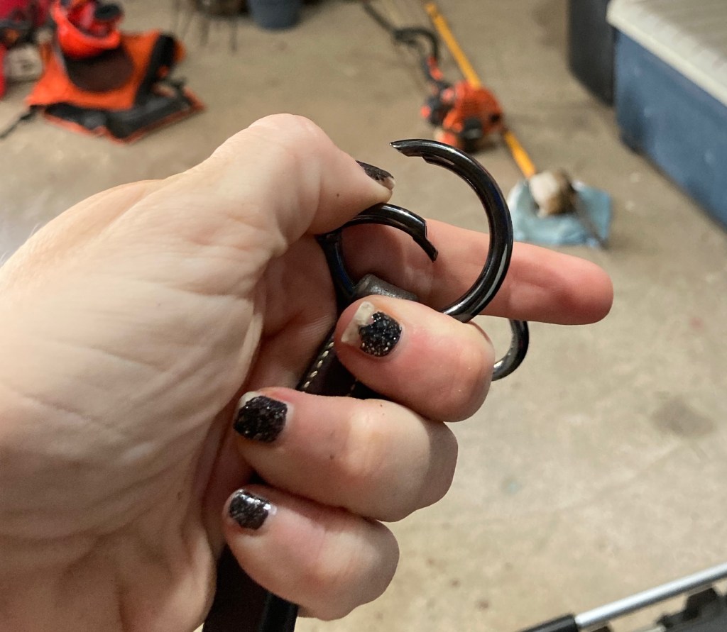 The other acquisition/upgrade last week was my running martingale clip rings. Presto is jumping in a running right now, but I sold my last running attachment (Henry used one when he was greener and more, uh, enthusiastic too, but settled out of needing it) a couple years ago. I grabbed a cheap $6 adjustable running attachment from someone on facebook one day so I’d at least have something for when he comes back. I dunno about y’all though but I freaking HATE having to unbuckle reins to run them through the rings (ain’t nobody got time for that) so I wanted clip-on ones like the Prestige and CWD runnings have. Stacie pointed out that duh you can just buy the rings by themselves (I got mine on the same Amazon order as my shirt, it was $7 for 5 rings) and convert any running to the clip-on ring style. She’s a genius. All hail Stacie.