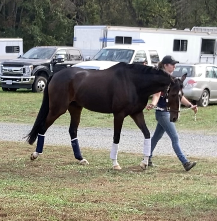After Bartville we headed to the show and got dropped off over by the stabling so we could see the horse that Holly was grooming for and put some stuff down in their tack stall. As we were standing there at the barn I happened to glance over my shoulder and who did I see out for a handwalk?