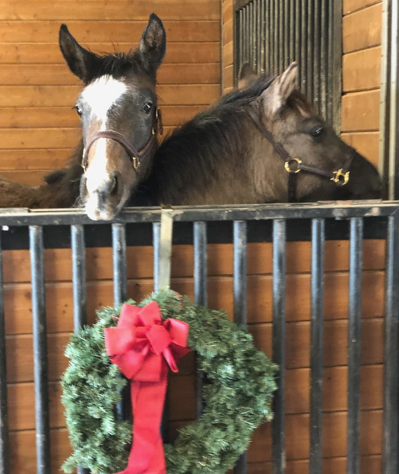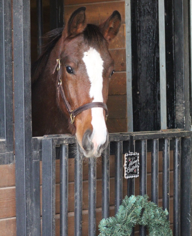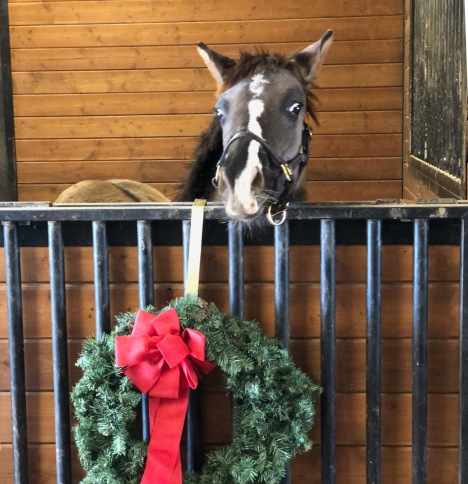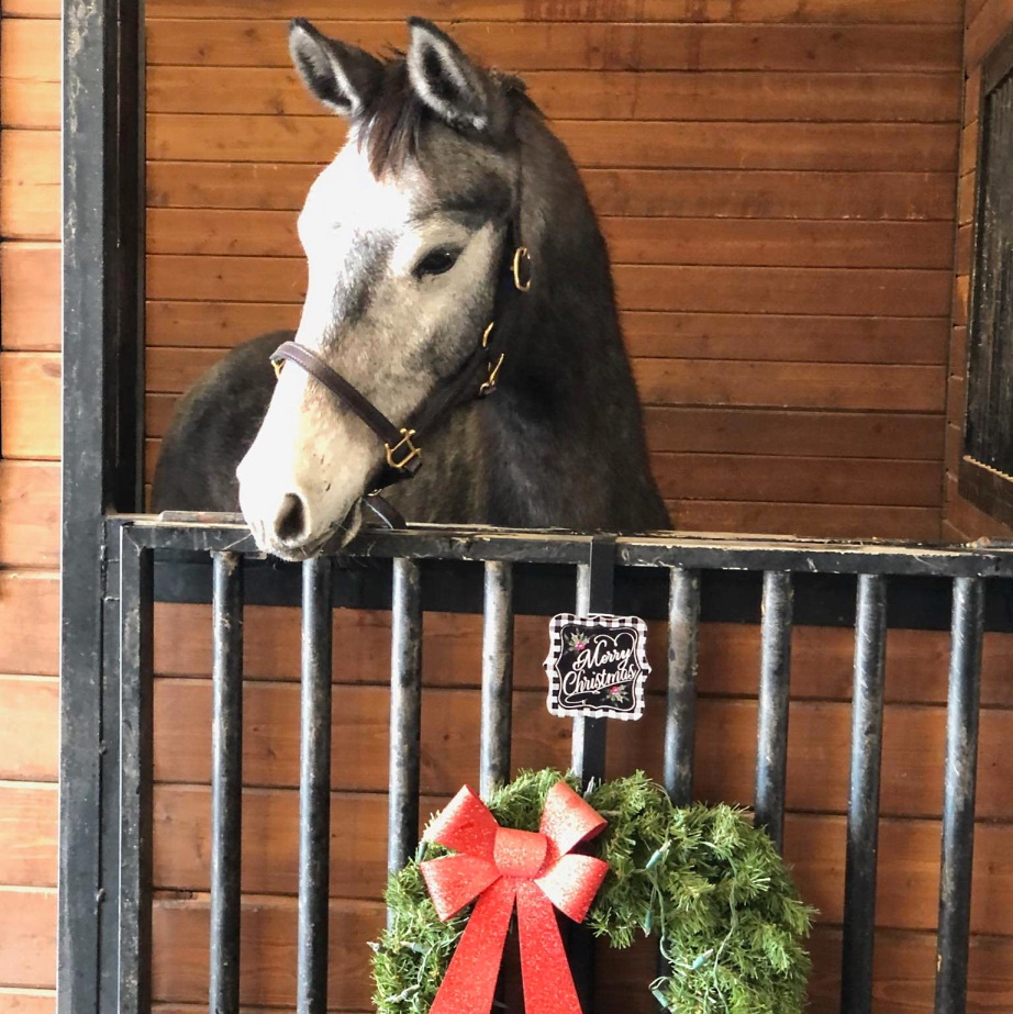 How are we only a week away from Christmas already? I’m definitely not ready, but Michelle is a big Christmas fan (she’s one of those people that binges Hallmark movies, help me) so naturally she added some decorations to the barn. The babies were inside anyway since it was also farrier day, and they were quite interested in the decorating process. Or, in some cases, just posing with said decor when it was up. It made for some cute pics.