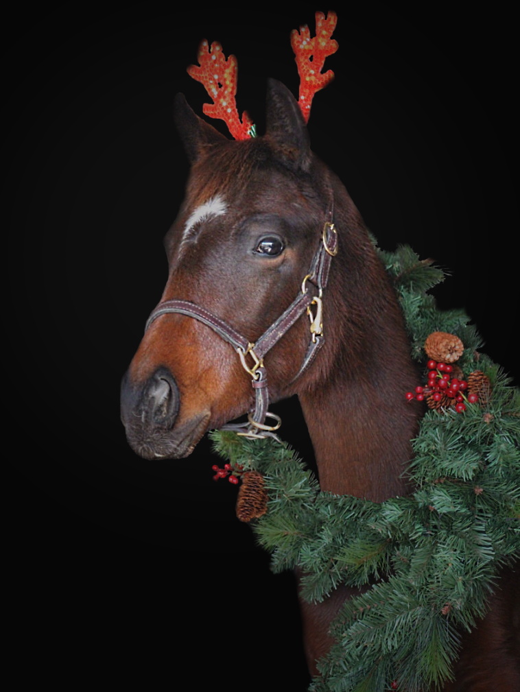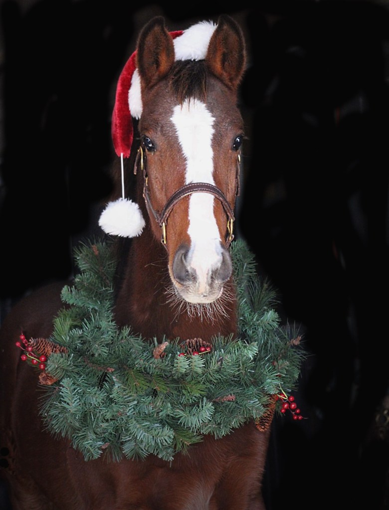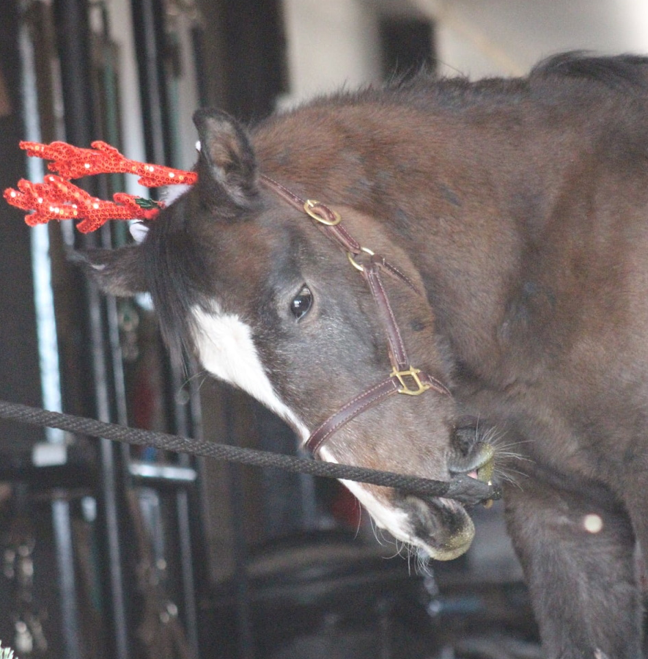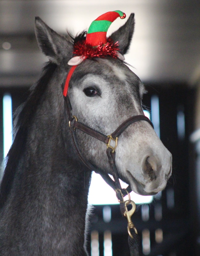 How are we only a week away from Christmas already? I’m definitely not ready, but Michelle is a big Christmas fan (she’s one of those people that binges Hallmark movies, help me) so naturally she added some decorations to the barn. The babies were inside anyway since it was also farrier day, and they were quite interested in the decorating process. Or, in some cases, just posing with said decor when it was up. It made for some cute pics.