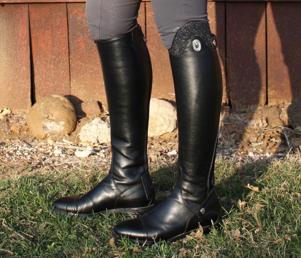 Those are gorgeous, I love the sparkly tops!! Alas (and strangely), the English-Western world in which I show hasn’t embraced bling on the English side. I mean, everyone is weighed down with 432 lb. of sequins and fringe when they take the same horse into the Western ring, but I’ve never seen a pair of glittery tall boots on someone in Hunter Under Saddle, LOL.
