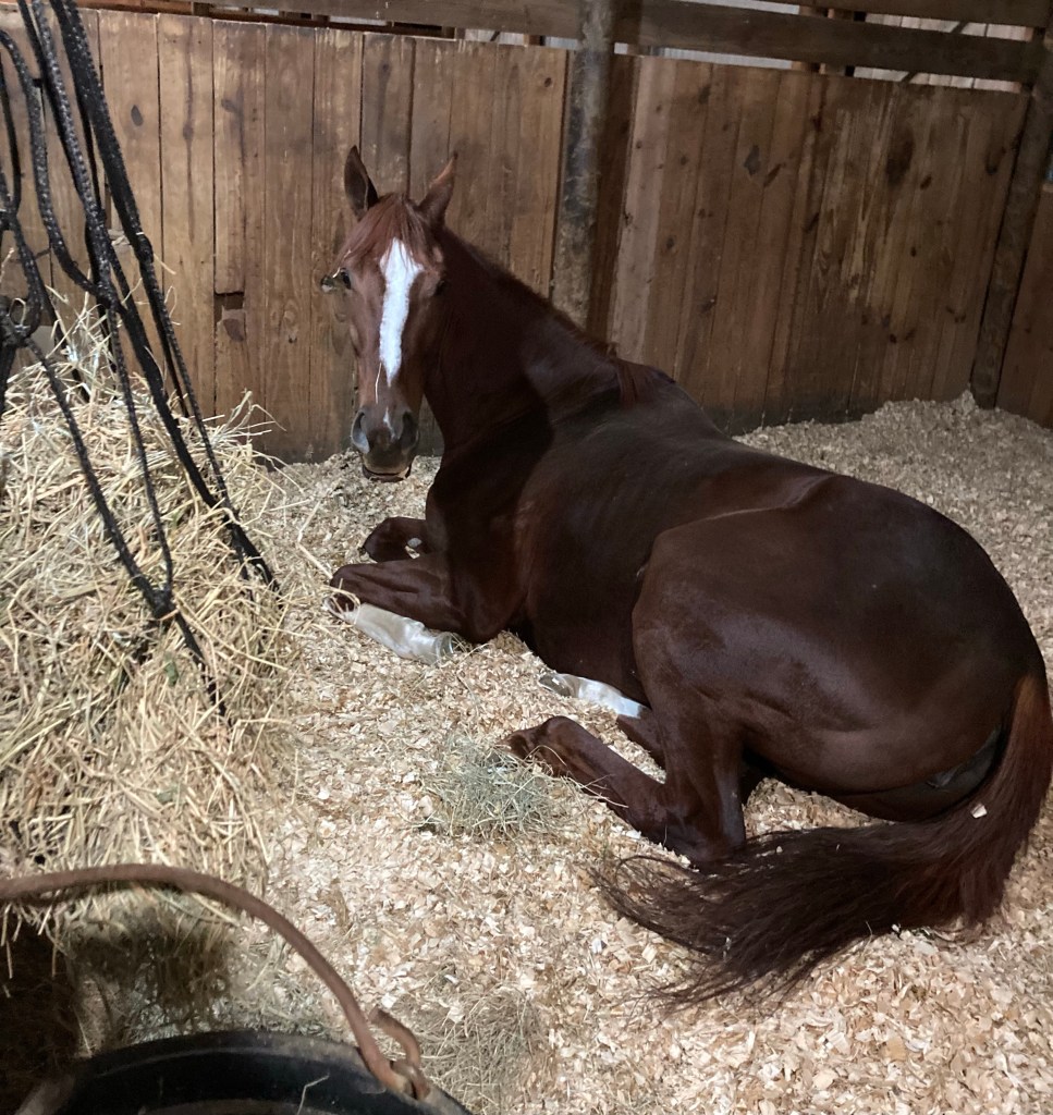 Gemma, due to no fault of her own, is really high maintenance at the moment. She’s fresh off the track, young, full of energy, and on stall rest, all at a new place to boot. That’s a lot. Trying to keep her happy and quiet and her stall clean and get her handgrazing/walking a few times a day is consuming every spare moment right now. She’s been wound a bit tight for sure, as expected, but has yet to do anything truly naughty or bad. I think when she’s in regular circumstances she’s gonna be a pretty chill girl.