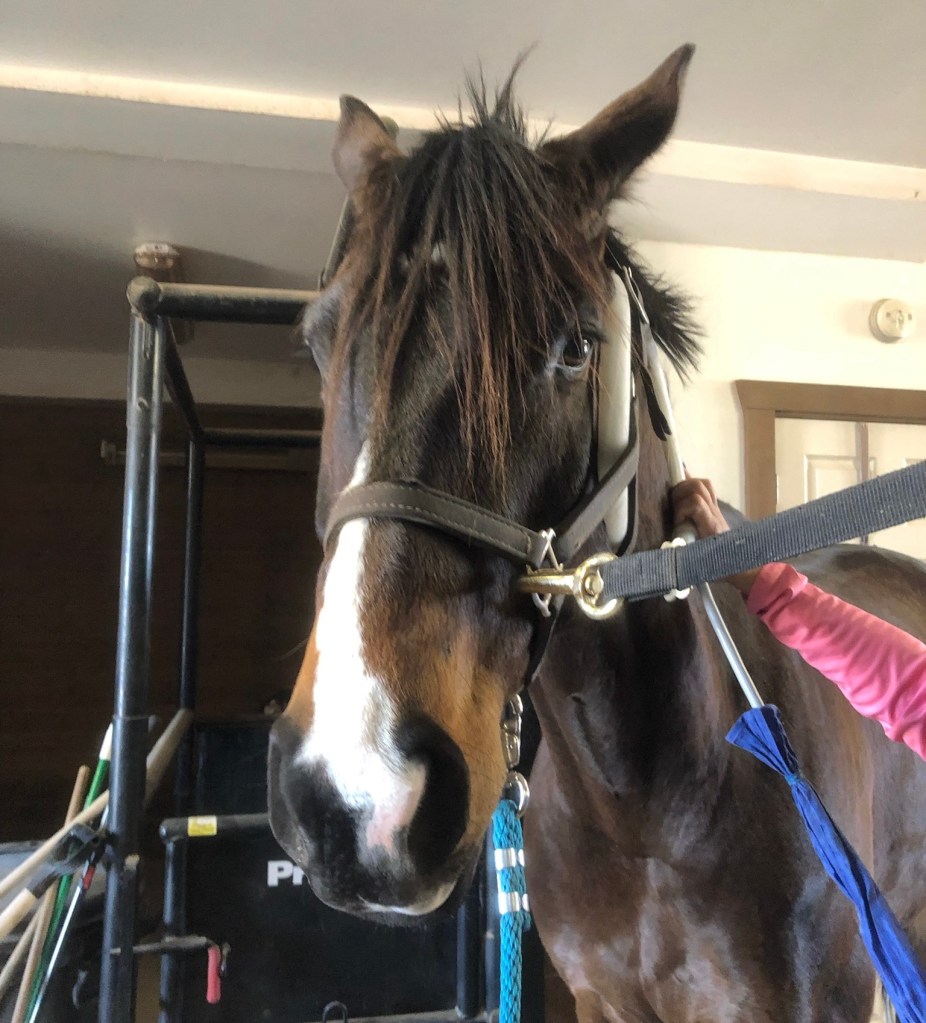 Her angles are… definitely not great. Like probably worse than they look from the outside. The left front is more negative than the right front, and both hinds are pretty negative as well. Definitely not a surprise – pretty typical of most horses coming off the track, and the vet and I both said “we’ve definitely seen way worse”, but we still need to get it corrected ASAP. So we talked options for her next shoeing cycle (good timing on all this, my farrier was already scheduled for tomorrow anyway) and made a plan. Basically we’ve got to start pulling that breakover back as much as possible to start correcting the angles and get her up off her heels, and maybe put a bar shoe on the fronts for a while and extend the heels a bit behind.