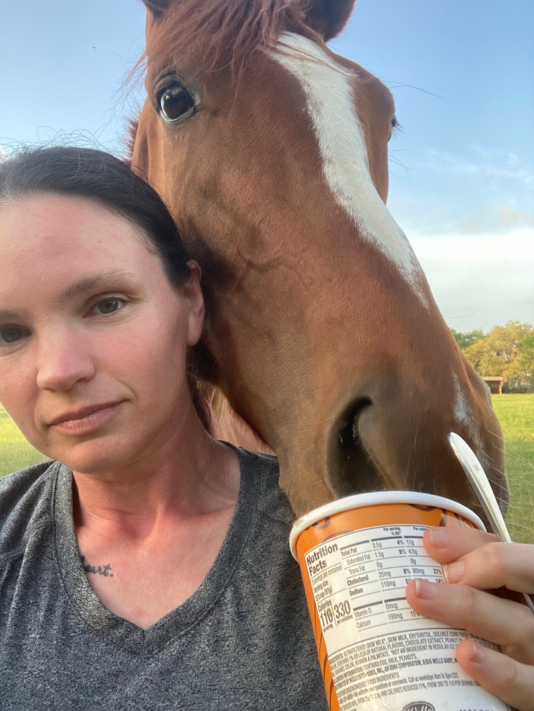 It was also nice to finally see Vee and Peyton in person… believe it or not I may have helped picked them out, but I had yet to see either of them in the flesh yet. Peyton is a classic TB type and gorgeous mover, and Vee might be one of the most beautiful mares I’ve ever seen, period. Like, she looked pretty in photos, but in person she’s an absolute knock out. Gorgeous mare with a great temperament, and VERY food-motivated. We already know Peyton is a great producer, but I can’t wait to see a Vee baby too. Fingers crossed!
