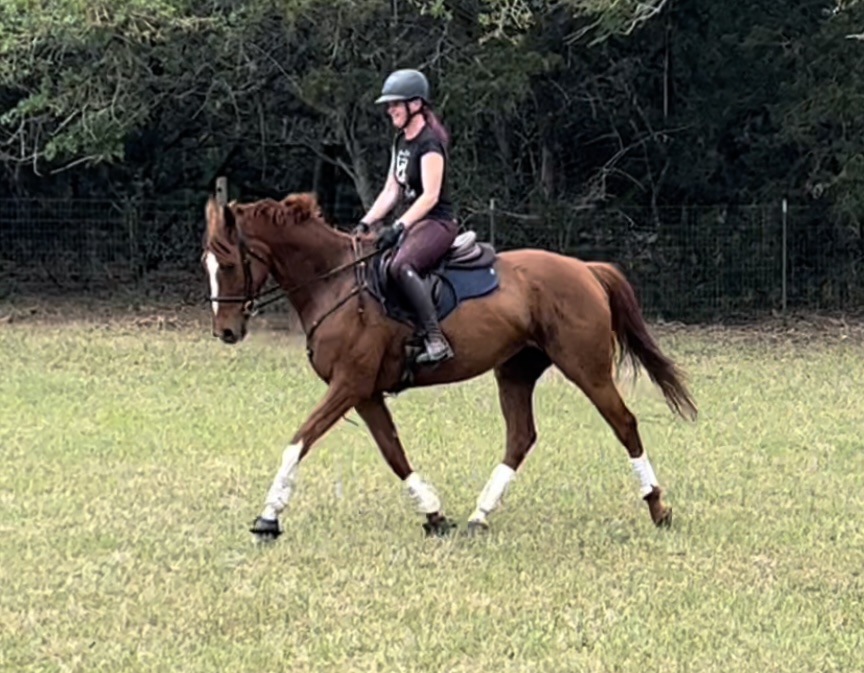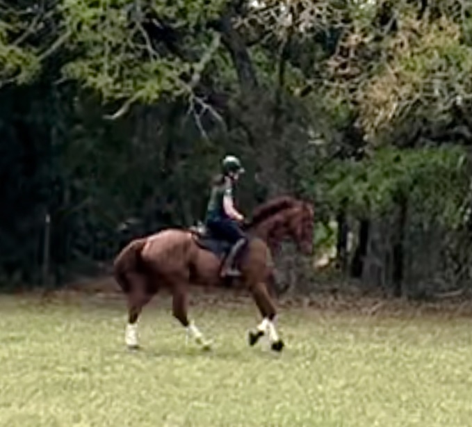 Under saddle she just gets better and better with every ride. I’ve never had one off the track that “got” the flatwork as easily as she does. She’s pretty steady in the contact now, the leg yields are decent, the shoulder-in is coming along, and she’s offering the beginnings of a stretchy trot. We’ve been adding in more transitions too, both within the gait and between gaits. The canter transitions still aren’t great but they’re much improved for sure, and every one we do is a bit better than the last. She’s already pretty fun to flat, and the more you ask of her the better she is. She’s so clever and can figure out what you’re asking pretty quickly. Definitely different from Henry, who has never been very good at dealing with any kind of pressure on the flat and gets frustrated/worried easily. Gemma has none of that.
