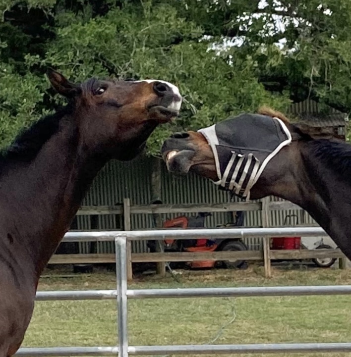 That situation was causing Henry to assert his extreme dickishness and chase Presto into corners to try to murder him, so we had to break them up. That herd dynamic just wasn’t great with the 4 of them together. We split Henry and Gemma into one pasture and Presto and Quinnie into another. Giving each 5yo an older horse (and removing Henry from Presto) seemed to do the trick and they’ve been great ever since.