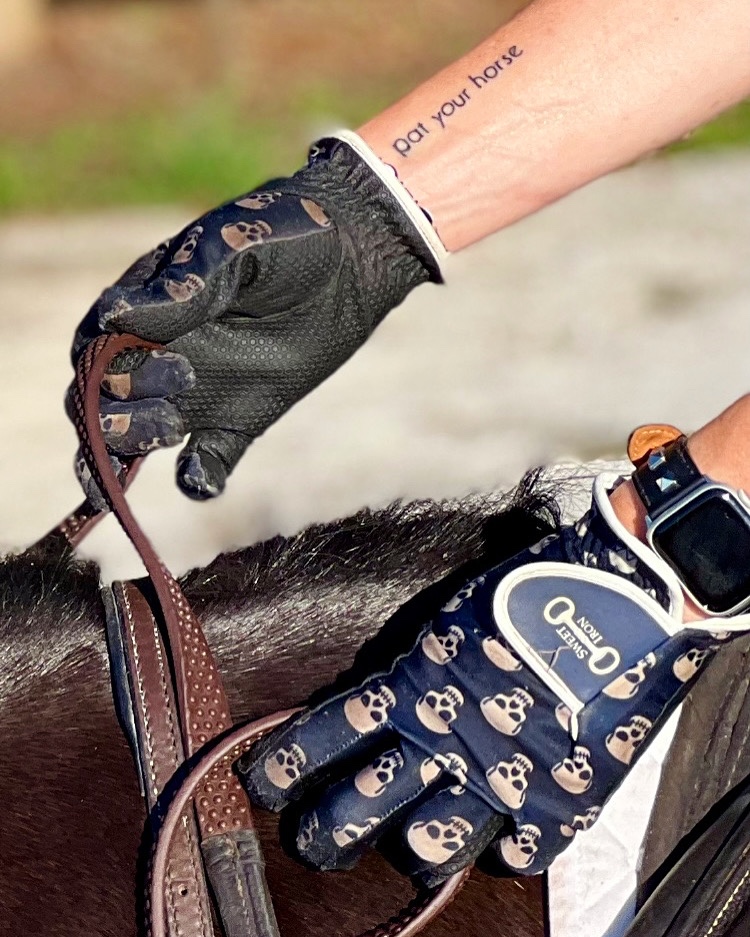 So anyway, we’re at their tailgating spot and they have temporary tattoos with the Ride iQ logo. I jokingly said to Jessa “how much is it worth to you if I tattooed the Ride iQ logo on myself for real?”. She laughed and said “you could do the tagline ‘pat your horse’!”. And ok, I know she thinks she was joking, but bam it hit me like lightning.