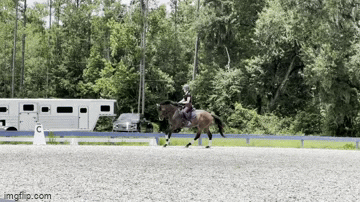 In the last lesson we worked a lot on getting his hind end under him and getting him to unlock his neck and lumbar, especially in the canter. He gave it a good ol college try, and ya know… about half of the canter was pretty decent. It was as if he went home and used his day off to think about it though, because I got on him for the next ride and it was just… there. Instead of 50% of it being good, 90% of it was good. And throughout the week every ride we got a little more and a little more. He wasn’t bracing against my hand, or trying to root me out of the tack, or flopping onto his shoulder, or swinging his butt around to avoid using it. He just… cantered, like a broke and civilized animal. Well alright then, kiddo.