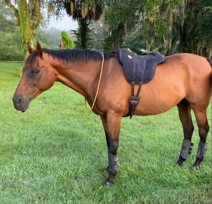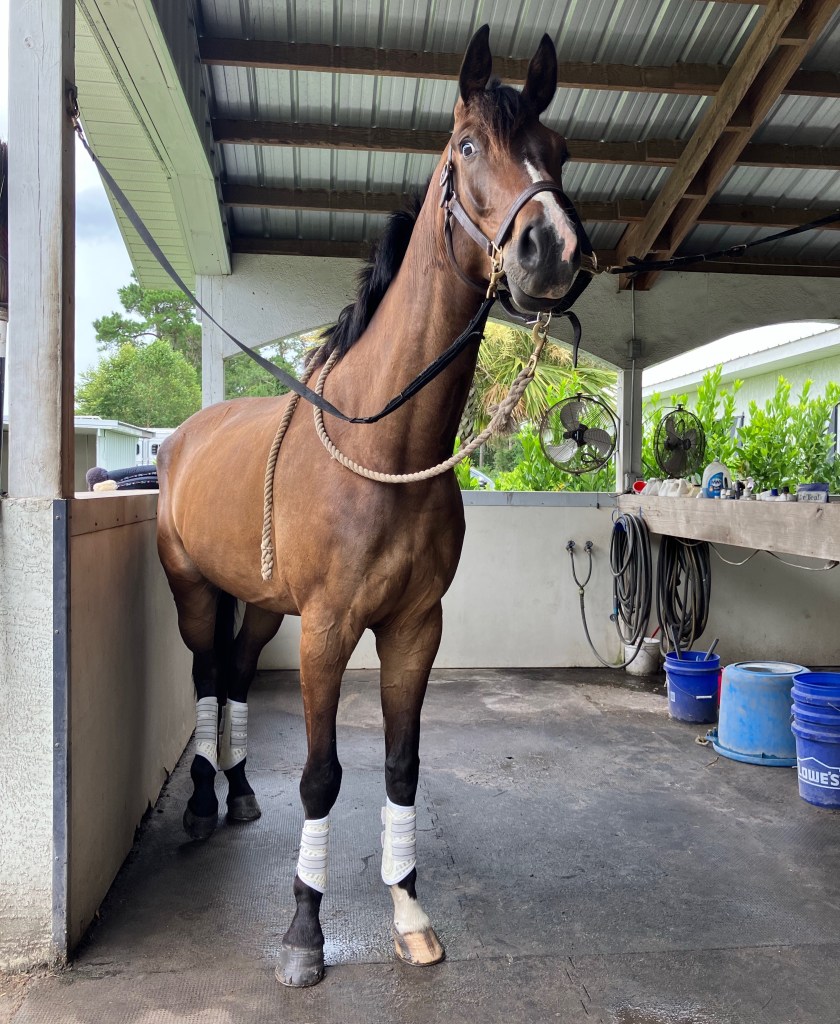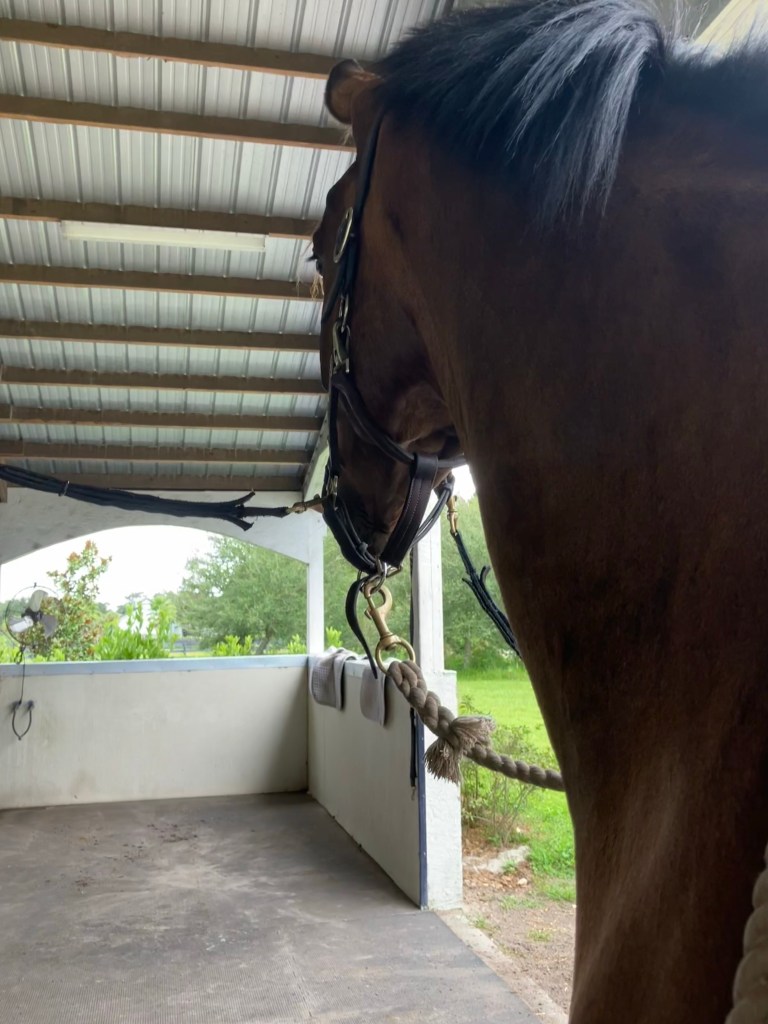 We’re out here having our best Florida summer. On days when it gets above 90 I bring them all inside under fans for the afternoon, and they come inside when it storms, but otherwise they’re outside a lot. Presto is looking a little bit sunbleached but he’s also filling out a lot and seems content with his life, so… he can be a little buckskin. That’s fine. He had a training ride and another lesson this weekend, but I actually got a lot of media from that so we’ll do it in a separate post. Otherwise we’ve just been chugging along working on things “brick by brick” style at home, and doing lots of hacking.