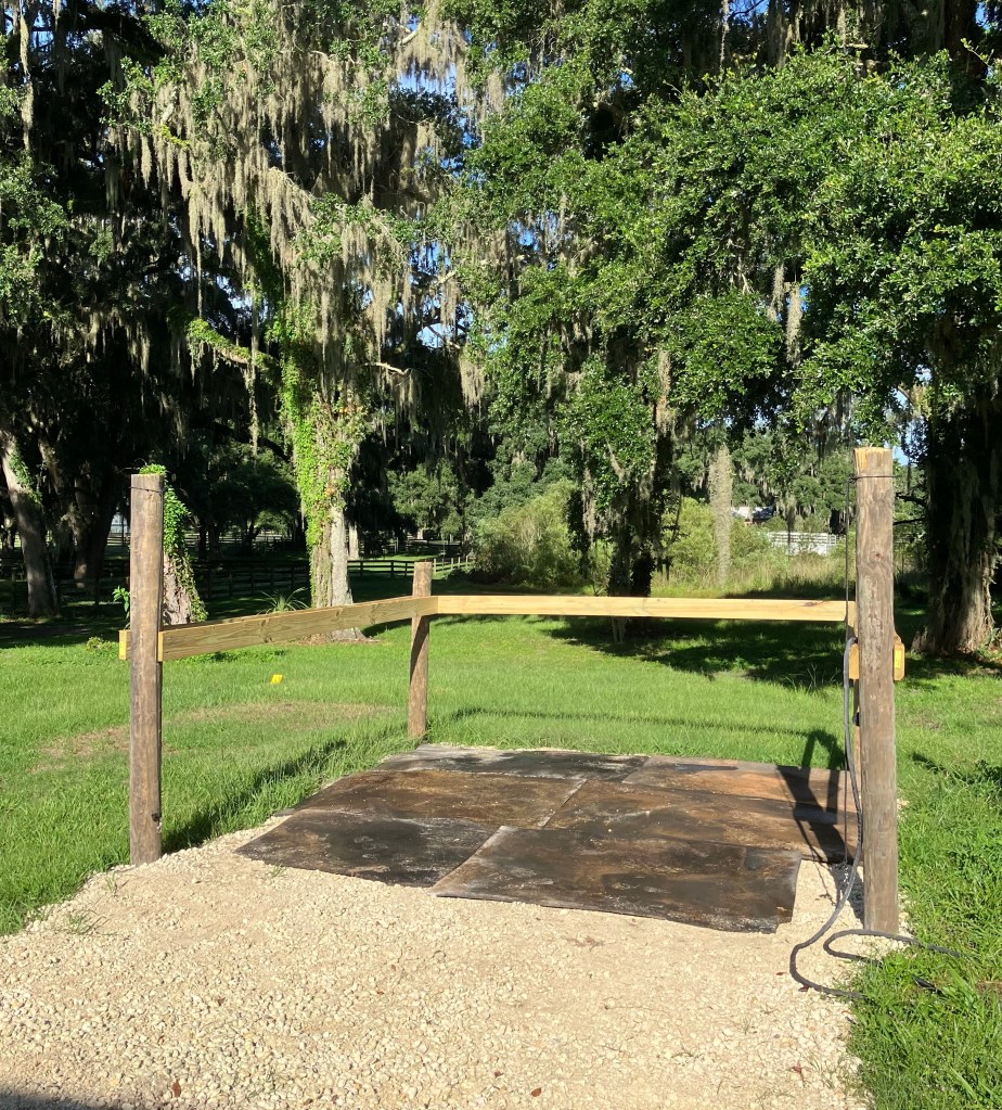 Aside from riding and taking care of the beasts, I’ve also been busy getting other stuff done too. We’ve officially got a washrack now, which is pretty exciting considering I’ve just been hosing my horses off on the driveway and neither Presto or Gemma is particularly great about standing still (that is a massive understatement in Presto’s case). I’m delighted to be able to crosstie his ass and hose him off with fewer dramatics. Hopefully now I will get less soaked in the process. We managed to do the washrack for next to nothing, since we already had base from another project and I reused the mats that were previously under a hay storage area. They’re older mats that are a little beat up and none of them are quite the same size, but they certainly do the job. Also, shoutout to the MVP item of the week that made it possible for that to be a one-person job.