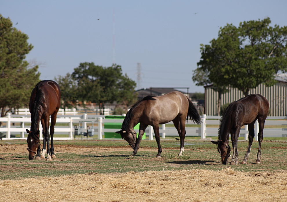 Although Quinlee is the only foal this year, she hasn’t been lacking for company. Inca has been pretty tolerant of other horses interacting with her baby (ok, in all honesty I think Inca is like “you want her? take her!”) so Michelle has been able to put Inca and Q out in the field with the yearling fillies. Both Pippa and Teddy are still young enough to be nice to the baby, and close enough in size to not put her in any danger when they get to playing. The three of them have become pretty good friends, and now they’re the official Girl Squad.