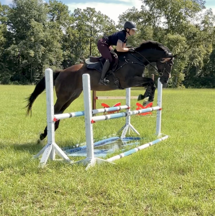 One yucky habit he has that I’m NOT a fan of is that he shows nappiness when having to leave the group in a setting like this. He wants to prop and (in extreme cases) pop his front end off the ground a bit and spin. What I’ve learned from prior outings is that if I nip it in the bud immediately and with decisiveness, it stops. So, when Steph sent us out to go canter some smaller fences and he decided to prop and spin, he got two good “I ain’t fucking playing” whacks on his bum. Fixed the napping, but he was a bit mad about it and wanted to ignore my half-halts at the next few jumps. Hard life being a noodle. He leveled out after that though, and we were able to get to business. Sometimes this horse has a lot of opinions, plus he’s 5 (which I call the “fuck you fives” because it’s literally the worst age) so he thinks life is real unfair sometimes and mom is really mean.
