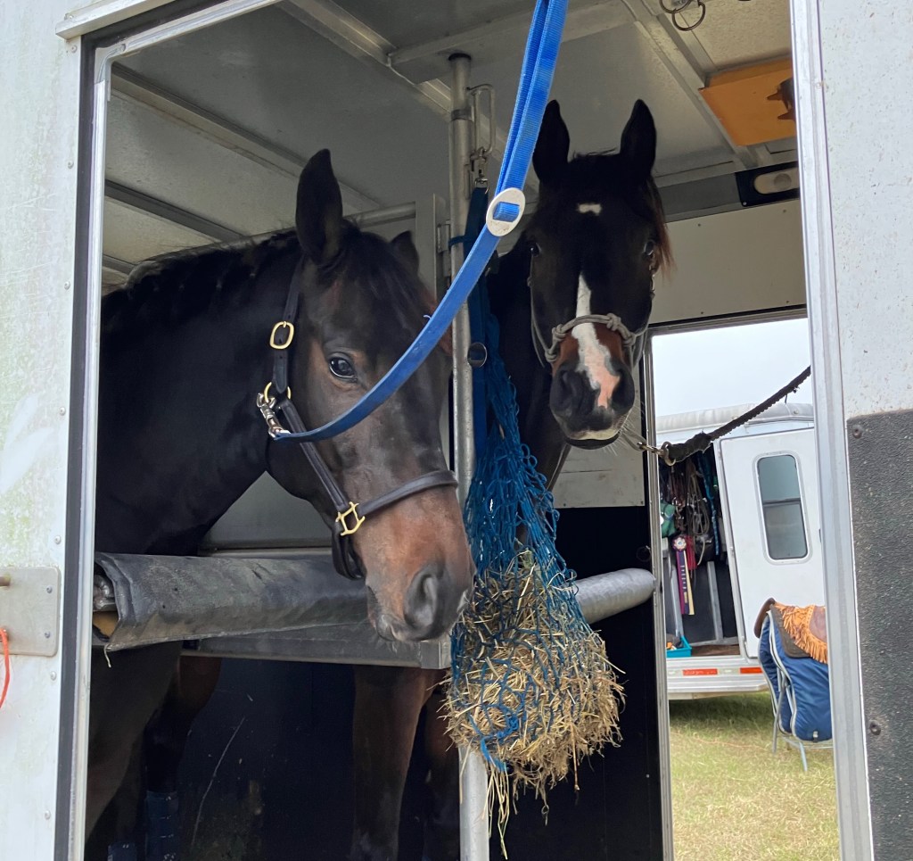 On Saturday morning we pulled into the showgrounds around 10 minutes after 7, and I tied Presto to the side of the trailer with a bucket and a haynet. He just isn’t the type that you can leave standing in the trailer all day by himself, he feels like he’s missing something and then tries to climb out. Hard nope for me, dawg. He’s better off, and considerably more relaxed, if he’s out where he can see things and move around a little. He was wired when I first unloaded him, so I got on him a little earlier than planned so that he could walk around and check stuff out. I think once he got to warmup he realized what was happening, and immediately took a breath. He hasn’t been to that many events (he did 4 last year I think?) but I guess that was enough for him to get it. He’s never done a one-day though, so this format was new for him.
