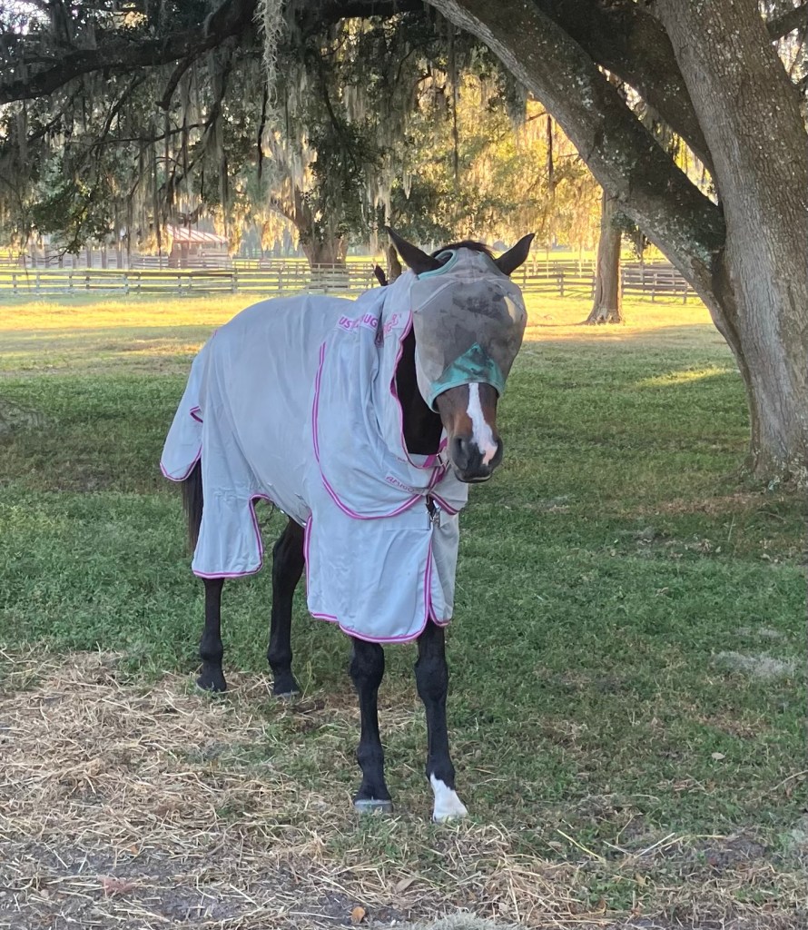 This shit was definitely not in the Florida terms and conditions that I agreed to. Luckily it was short-lived and this week I’m back to sweating. Much better. I did have to pull out everyone’s blankets last week though, and there for a few days they all resembled dragons more than horses. Well ok, Presto doesn’t pass for a very scary dragon when he’s wearing unicorn pajamas, but still.