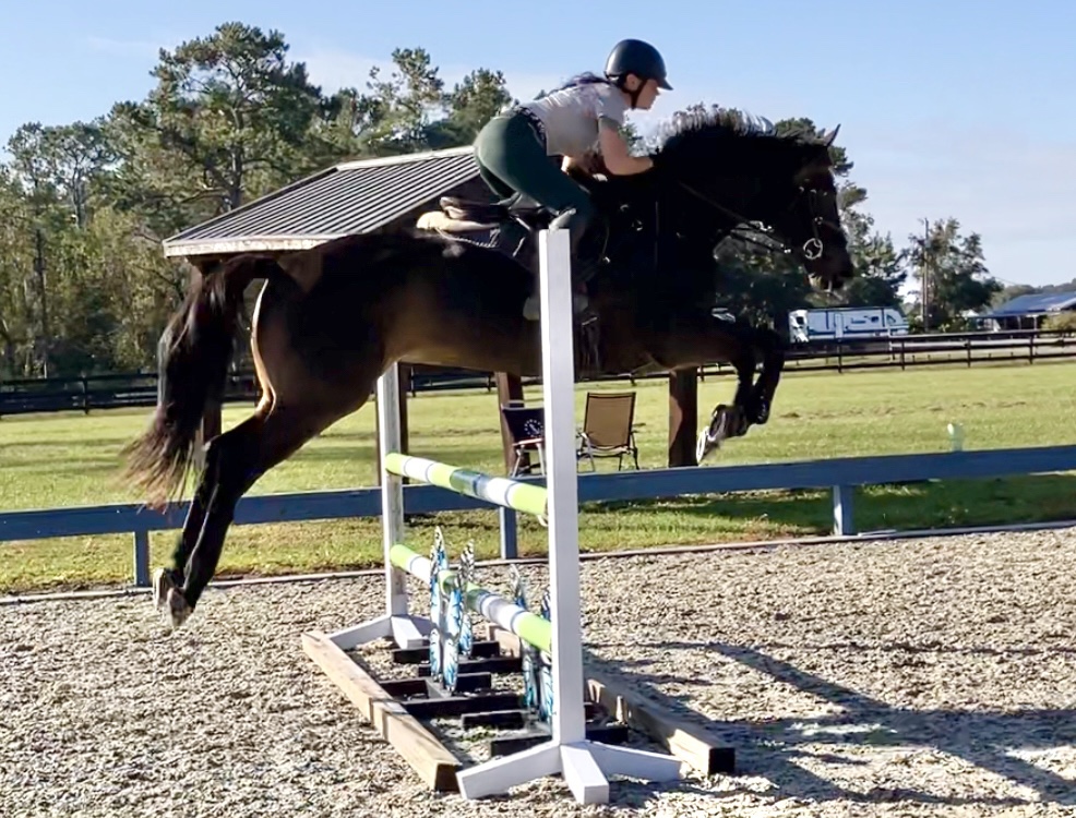 We’ve been jumping him a little bigger, since honestly he’s so blasé and unimpressed with anything little these days. As the jumps get bigger, he gets better and better. He’s staying rideable, he’s listening, he’s doing his job, and the quality of his jump is improving as he’s getting stronger.
