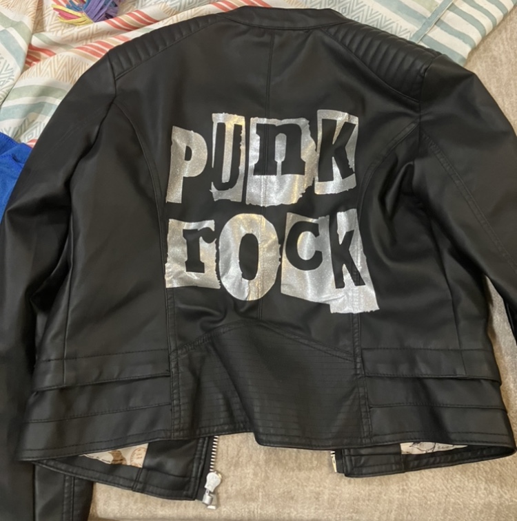 I also used the Cricut and some silver glitter adhesive vinyl that I already had to make a little punk rock decal for the back of my leather jacket.