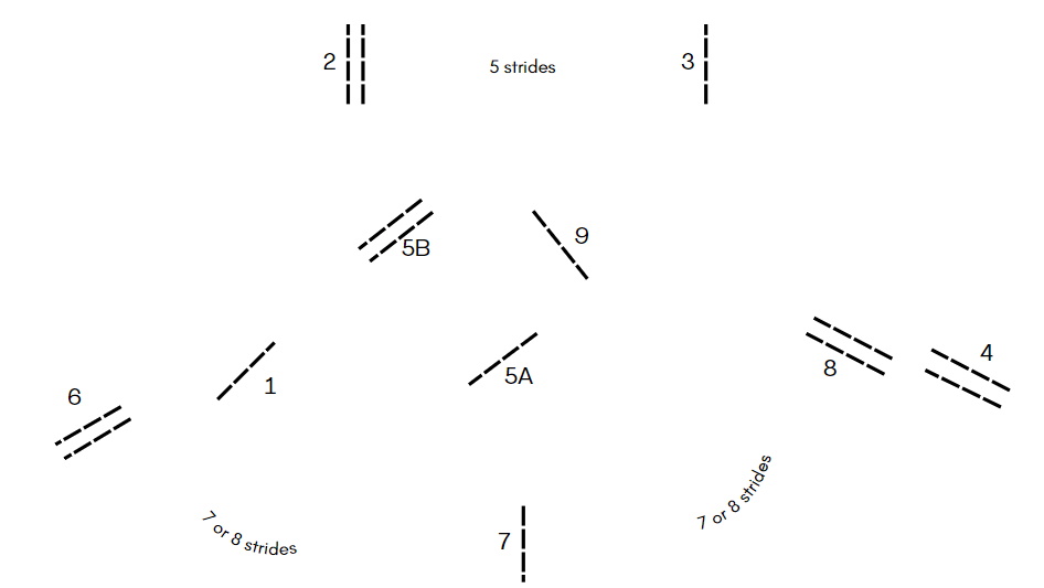 It was your pretty basic Novice though. Friendly ramped first fence, stacked log thingy, table, ramp, ditch to hanging log half coffin, another table, house, water, bank up out of water, 5 bending strides to a sharks tooth thingy, then a corner, some tires, a house, a down bank 4 strides to a house, a skinny log, a trakehner, and a rolltop brush.