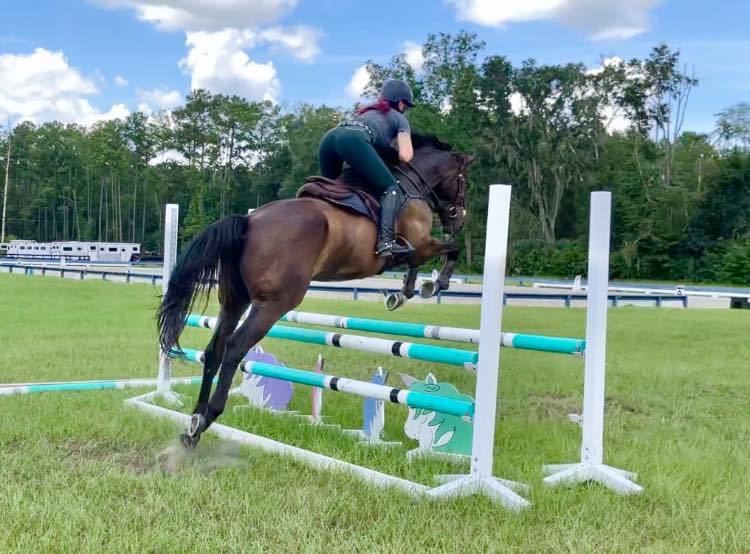 Presto continued to really step it up in our jump lessons and Steph suggested we look at a Training move-up. I pondered whether or not she might have a crack habit, but she kept raising the jumps and the horse just got better.