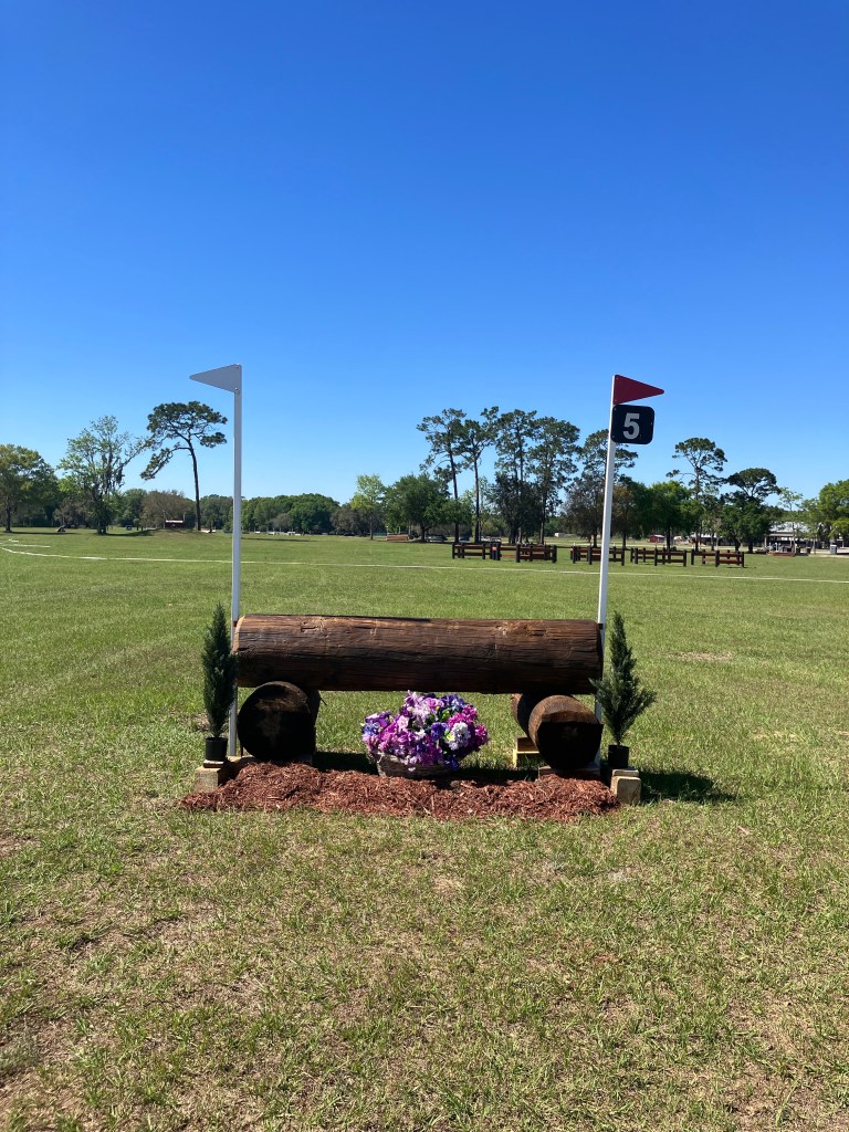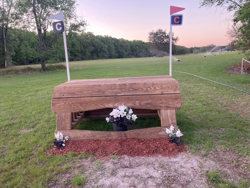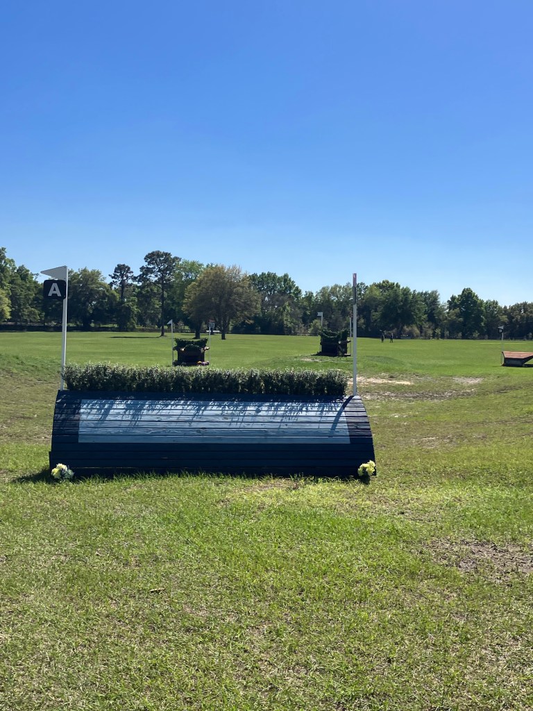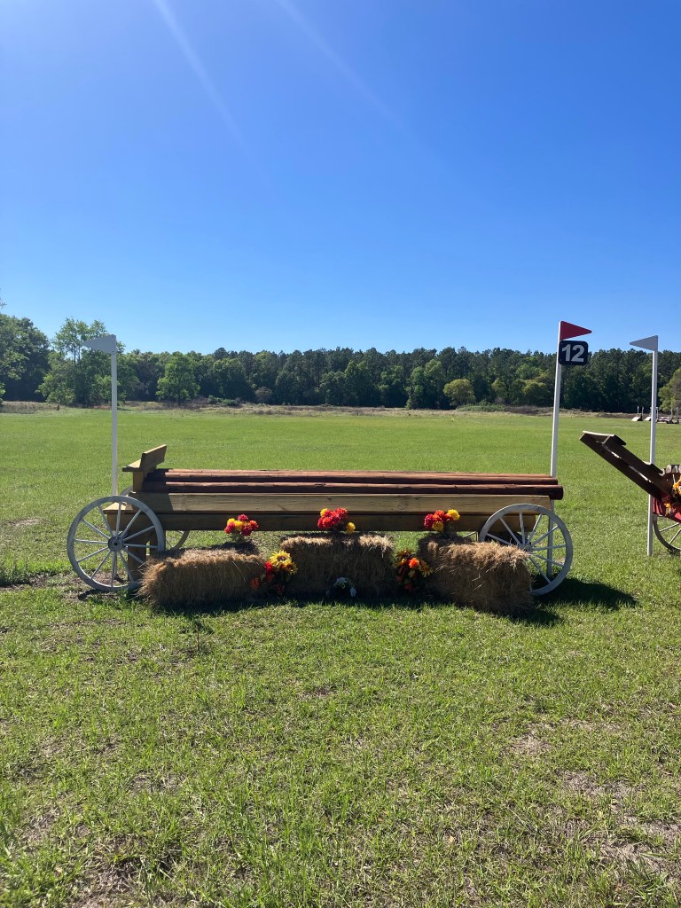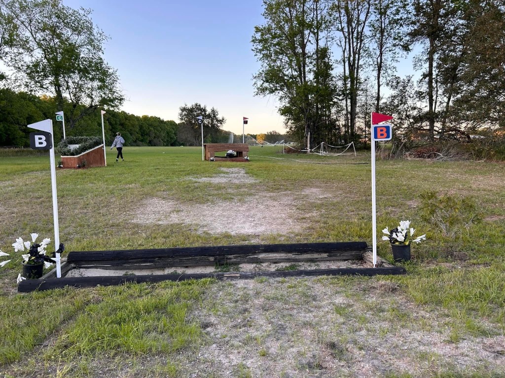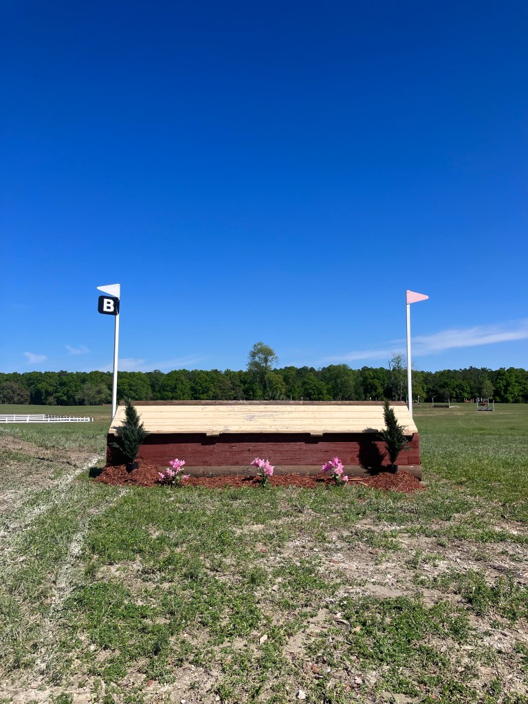 log stack oxerrolltopwelcome to your first combo! hanging log…about 7 strides to the upbank, 2 strides to the downbankand then a 90 degree left turn to the skinny hanging log in 6 stridesview of the skinny from the droplog ramp7a house into water – B is to the right on the moundhouse on the mound out of the waterMIM oxer9A big brush with a drop landing into the craterskinny wedge up out of the cratertablerolltop down into another cratercorner up out of the crater off a left turnwagonCoffin ABC – MIM rail in at Awide ditch (I could barely step across it) at Bskinny table at C on a slight anglebenchtable into water90 degree left turn to the skinny table on the mound up out of the watersteeplechase brushlog box