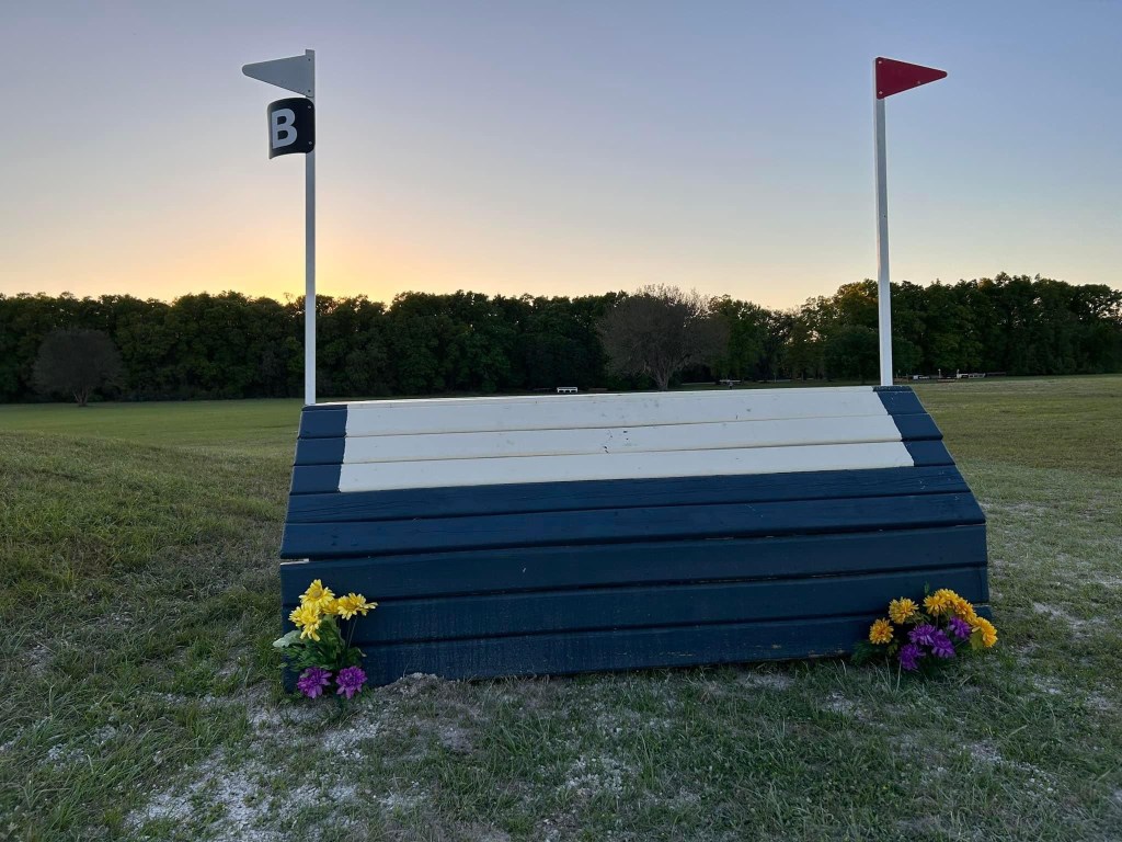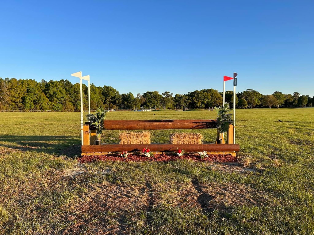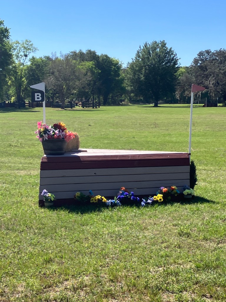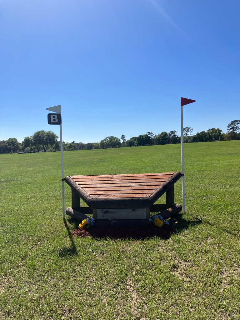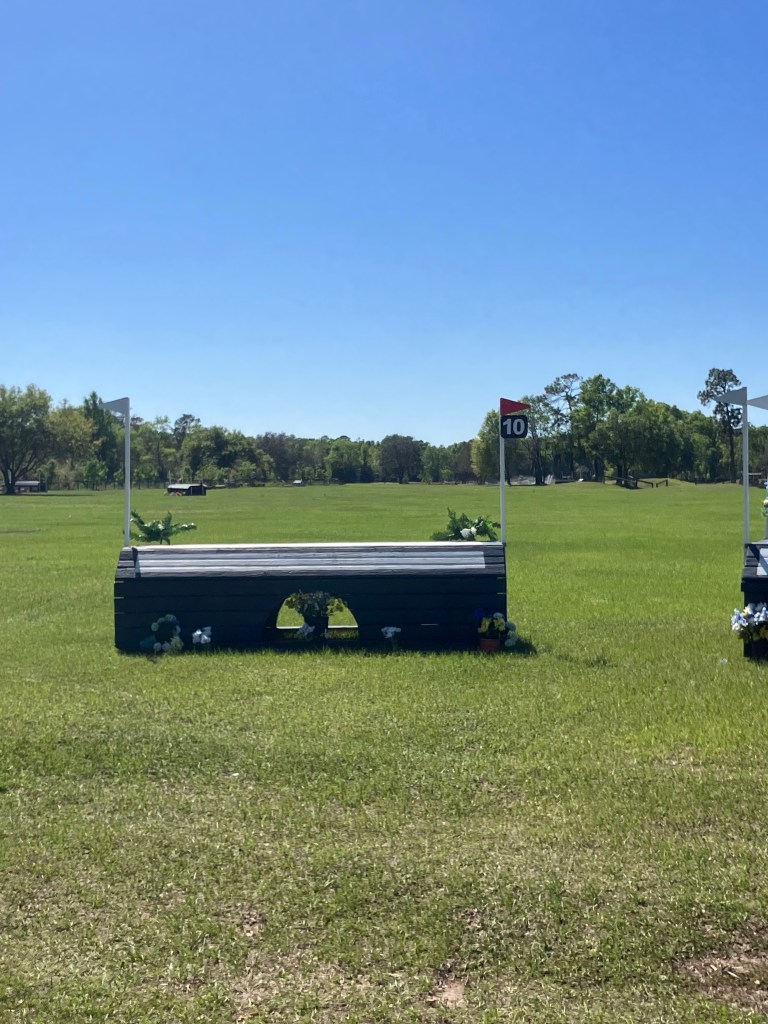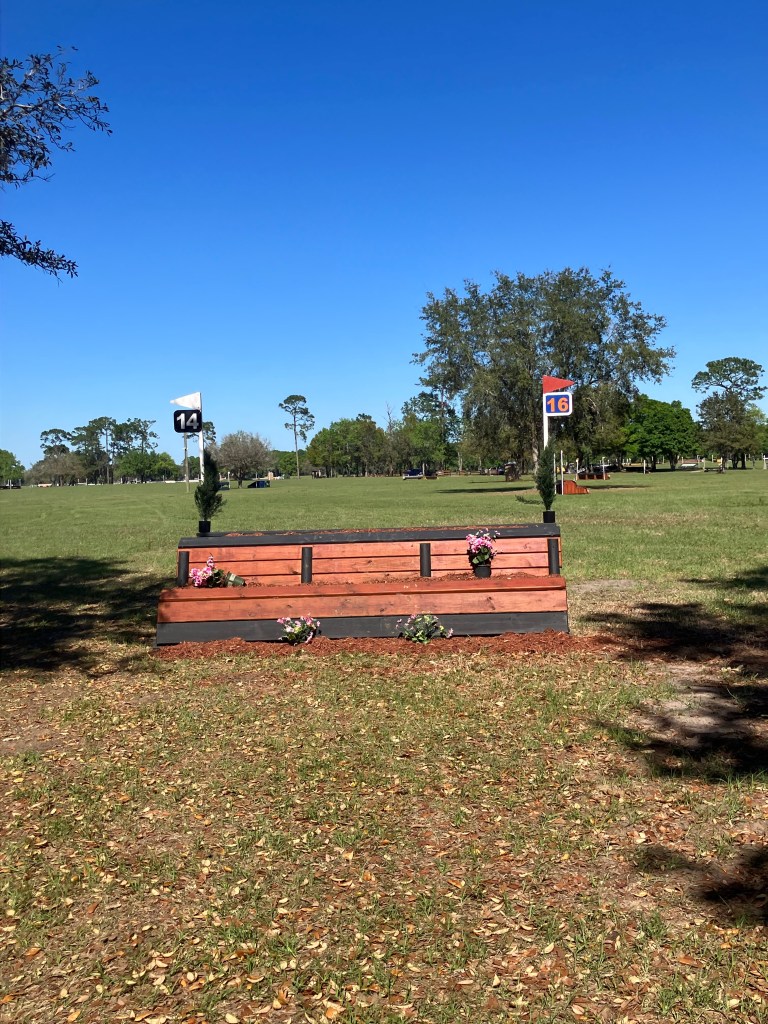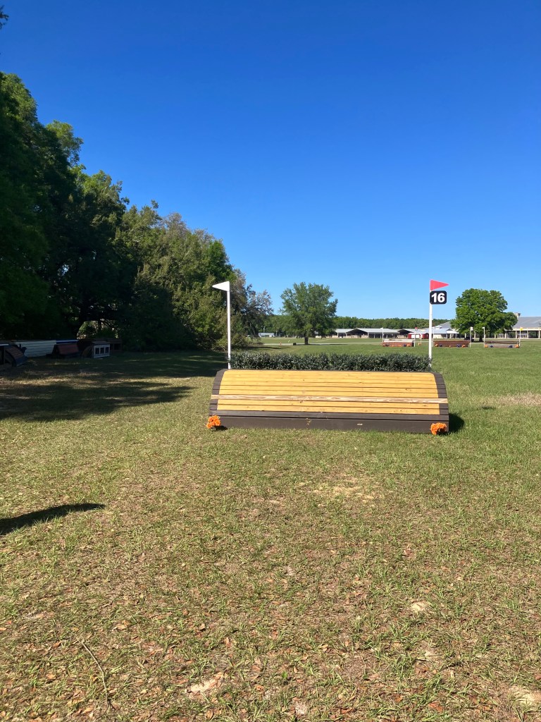 log stack oxerrolltopwelcome to your first combo! hanging log…about 7 strides to the upbank, 2 strides to the downbankand then a 90 degree left turn to the skinny hanging log in 6 stridesview of the skinny from the droplog ramp7a house into water – B is to the right on the moundhouse on the mound out of the waterMIM oxer9A big brush with a drop landing into the craterskinny wedge up out of the cratertablerolltop down into another cratercorner up out of the crater off a left turnwagonCoffin ABC – MIM rail in at Awide ditch (I could barely step across it) at Bskinny table at C on a slight anglebenchtable into water90 degree left turn to the skinny table on the mound up out of the watersteeplechase brushlog box