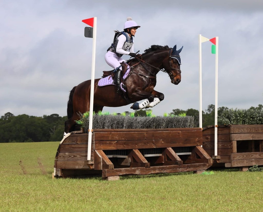 But then you did have a bit of a long gallop stretch to the MIM oxer at 8, and then another shorter stretch to the next combo, at the first crater (they love their craters here in Florida to make terrain questions). This one was a bit legit, they had a big max brush steeplechase fence at the lip of the crater so you jumped down into it, then came through it and up out of it to the right over a skinny wedge.