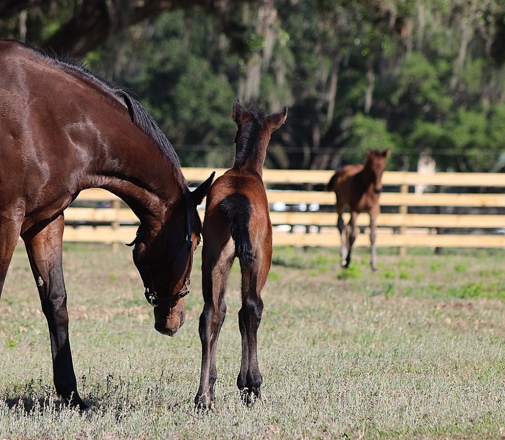 Now that Rue is out of the fresh-and-wobbly phase of foaldom, it’s time for another fun part of our baby timeline: introducing them to each other.