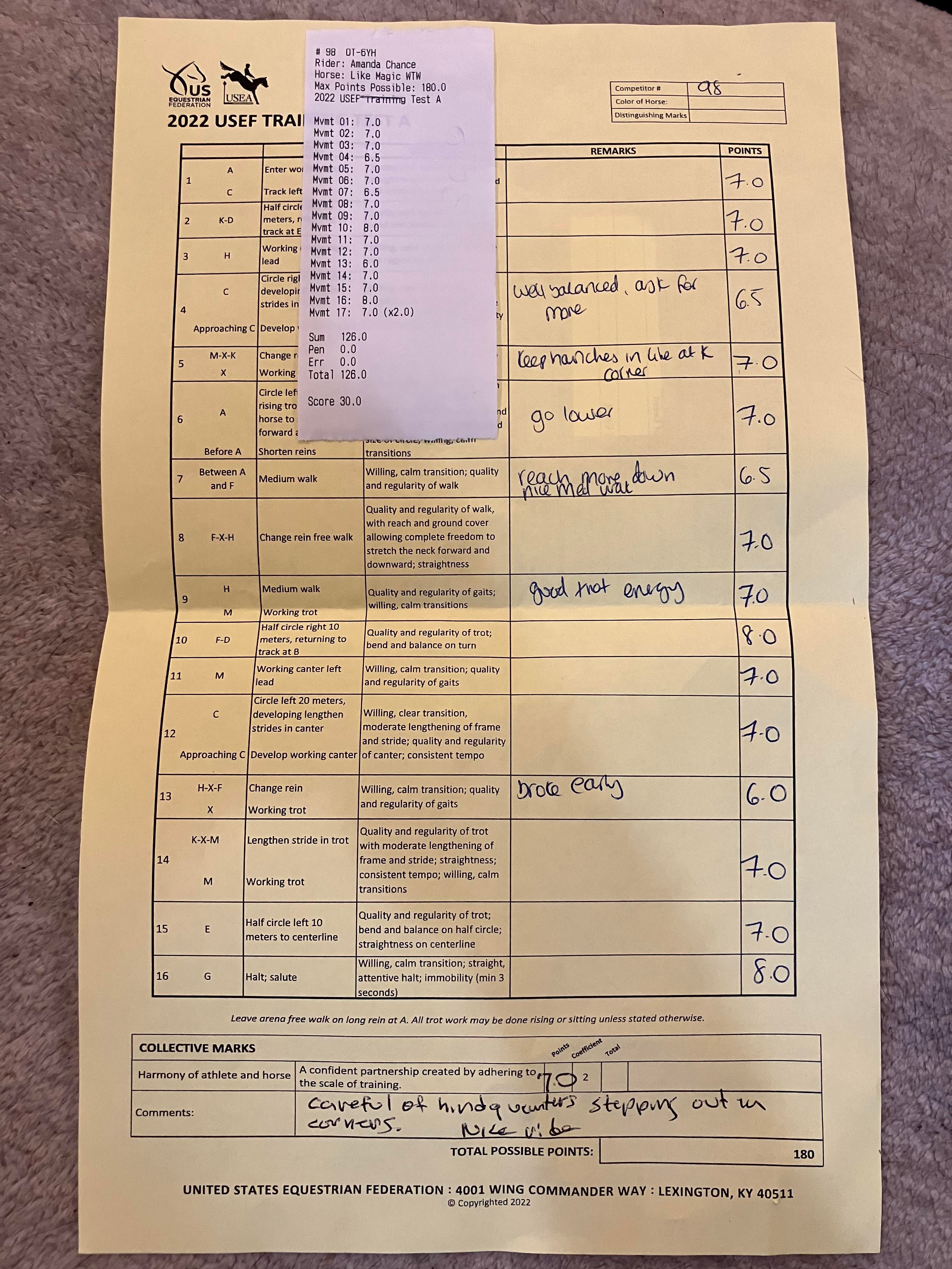 I was kind of sad there weren’t more horses in the division, since I feel like his finishing score of 30 still would have been respectable in full company. I’ll take the blue ribbon though.