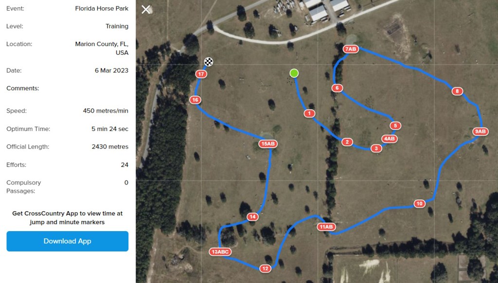 Once again it was an entirely new course from last month’s event, they always change everything at Florida Horse Park, which is great. Even the start box was in a new place (this was our third Training at this venue and the third entirely different course with entirely different startbox placement). It’s something I really appreciate about the venues here, because in Texas the courses only changed once or twice a year. You never know what you’re going to get when you come here.