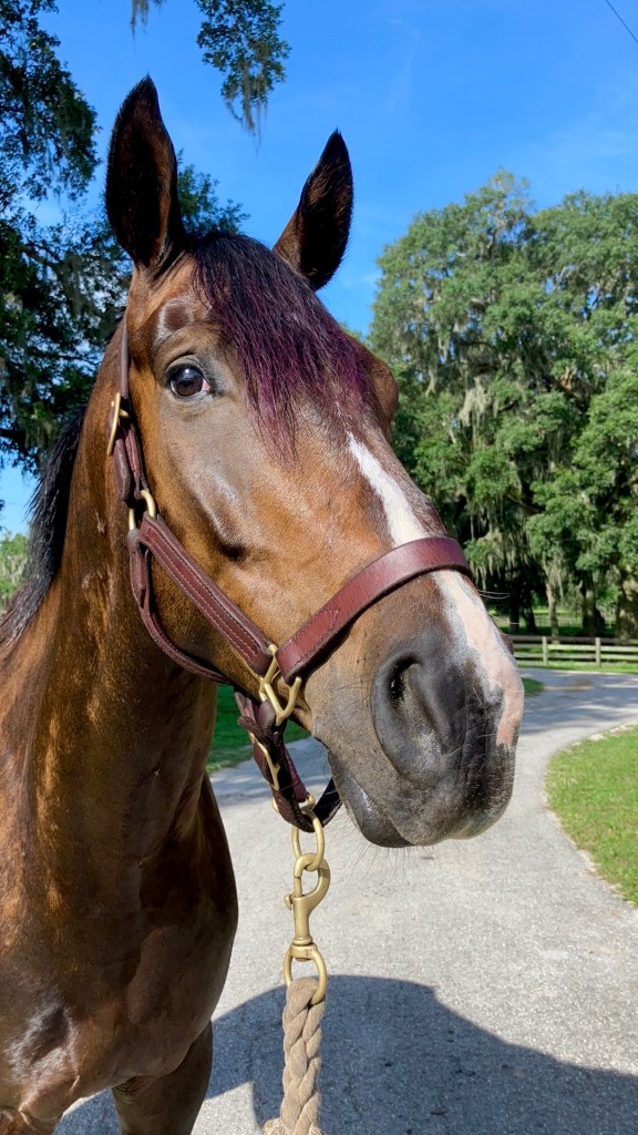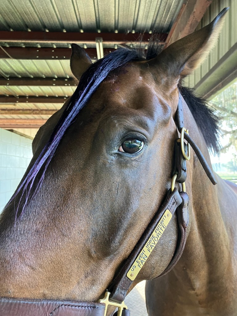 I find it endlessly entertaining and very fitting. Purple forelock is Presto’s summer vibe for sure. He may have started a TikTok trend… a couple other people have already done their horse’s forelocks too. If this is my legacy, I’m totally here for it.