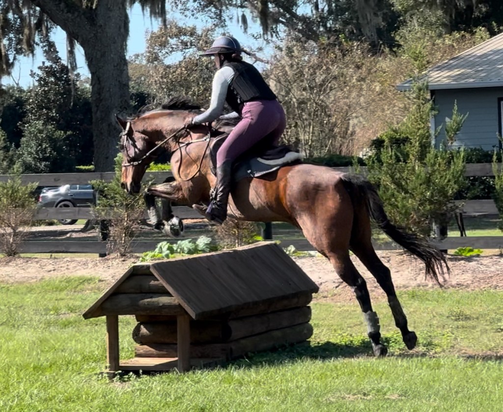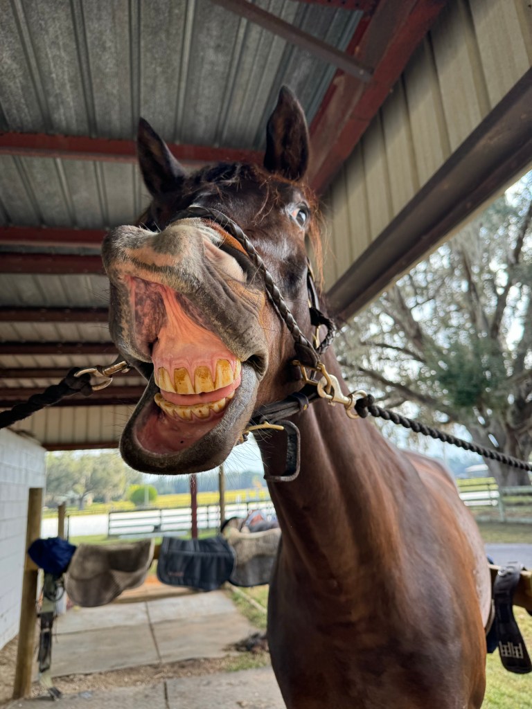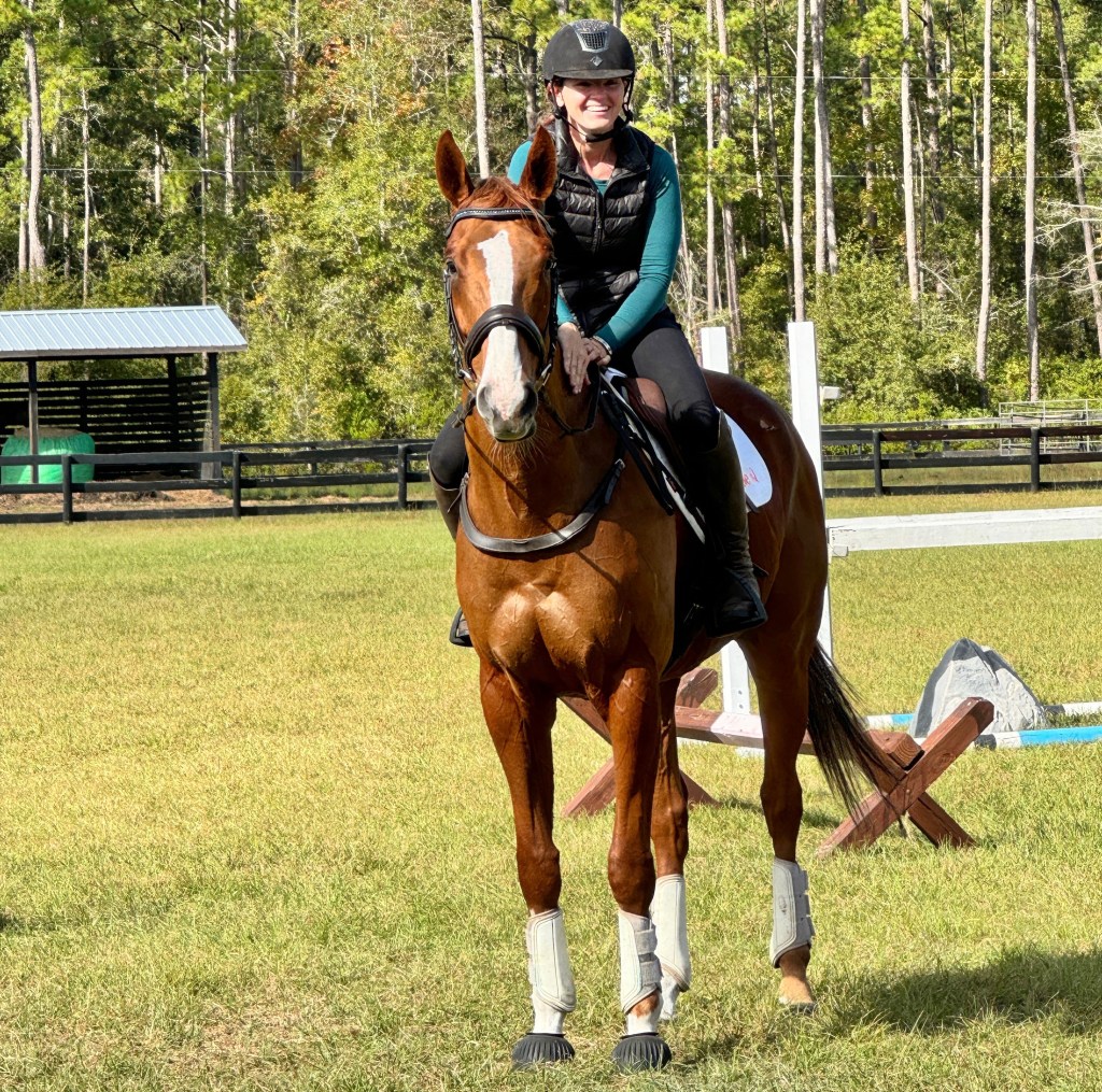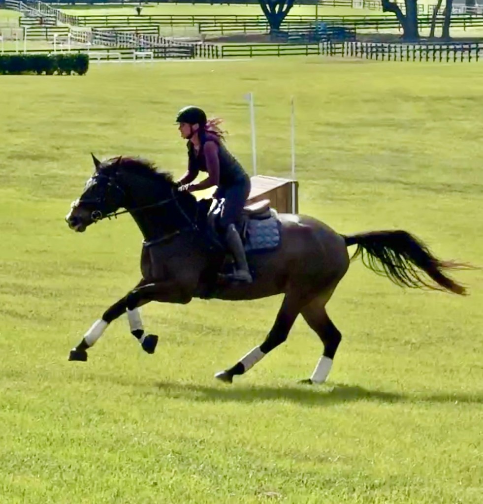 On Tuesday morning we went on a XC field trip to Majestic Oaks. I took Presto, Hillary took Freya, and Kathleen took Henry for a spin. He was delighted to snack on her offering of pastries (Honey Buns) and add a new fan to his club. She rode him great and he had a superb time bebopping around.
