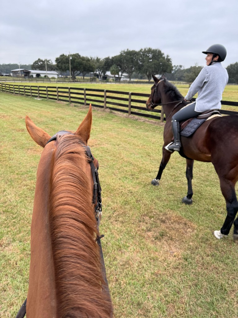We were going to go for a hack afterward and I took a few minutes beforehand to trot and canter him to see how he felt. Definitely better. He for sure had increased range of motion through his body, and more suppleness from left to right. I think he’s still got a ways to go (and prob needs some massage to accompany the chiro) but it seems like we’re on the right track.