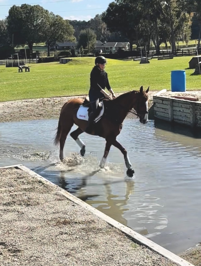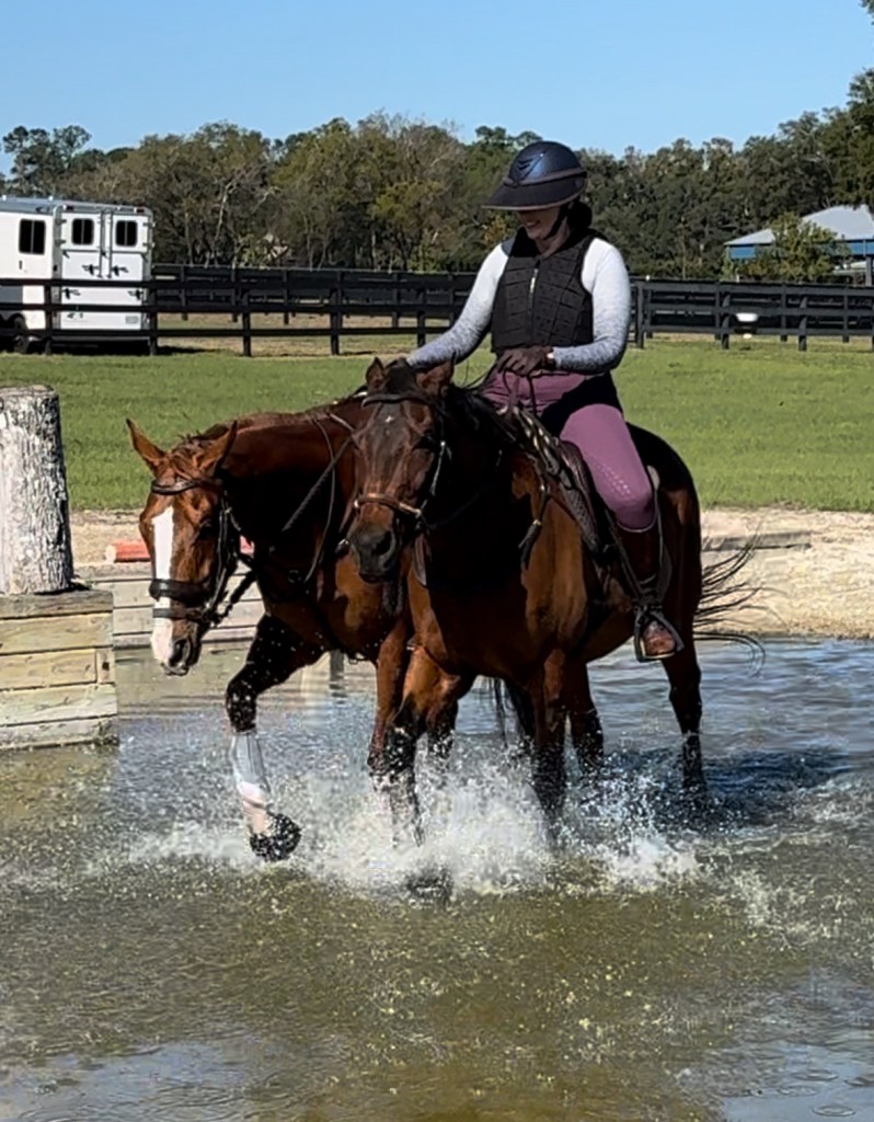 Admittedly I thought that the water might be the thing about XC that Argo wasn’t so sure about. He’s a clean horse, not particularly playful or overly curious, and those types sometimes just really don’t want to go in the water. So ya know… color me shocked when he eagerly took himself in. Not a single bit of encouragement required.