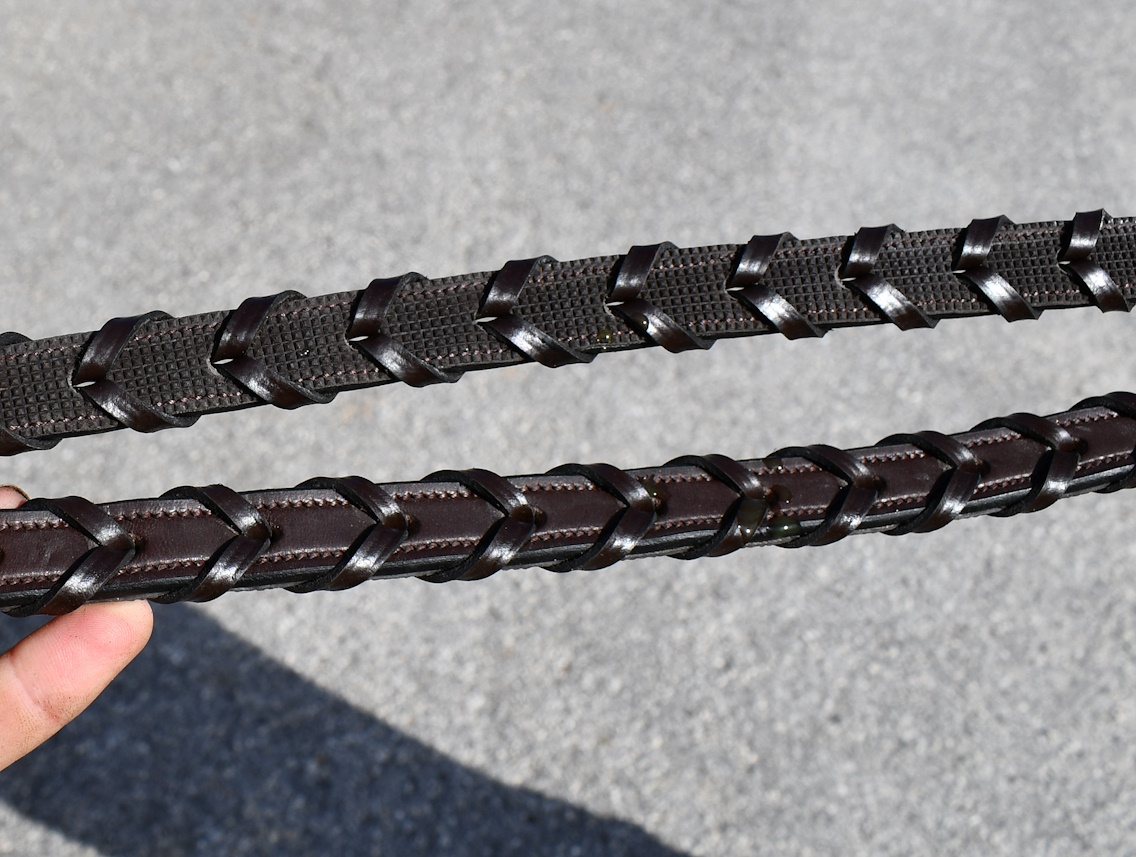 You can opt to get the bridle with matching reins, too… these are laced like a traditional hunter rein but have rubber lining on the inside for extra grip, which is brilliant. She said those are her most popular, best-selling item, and I can see why!