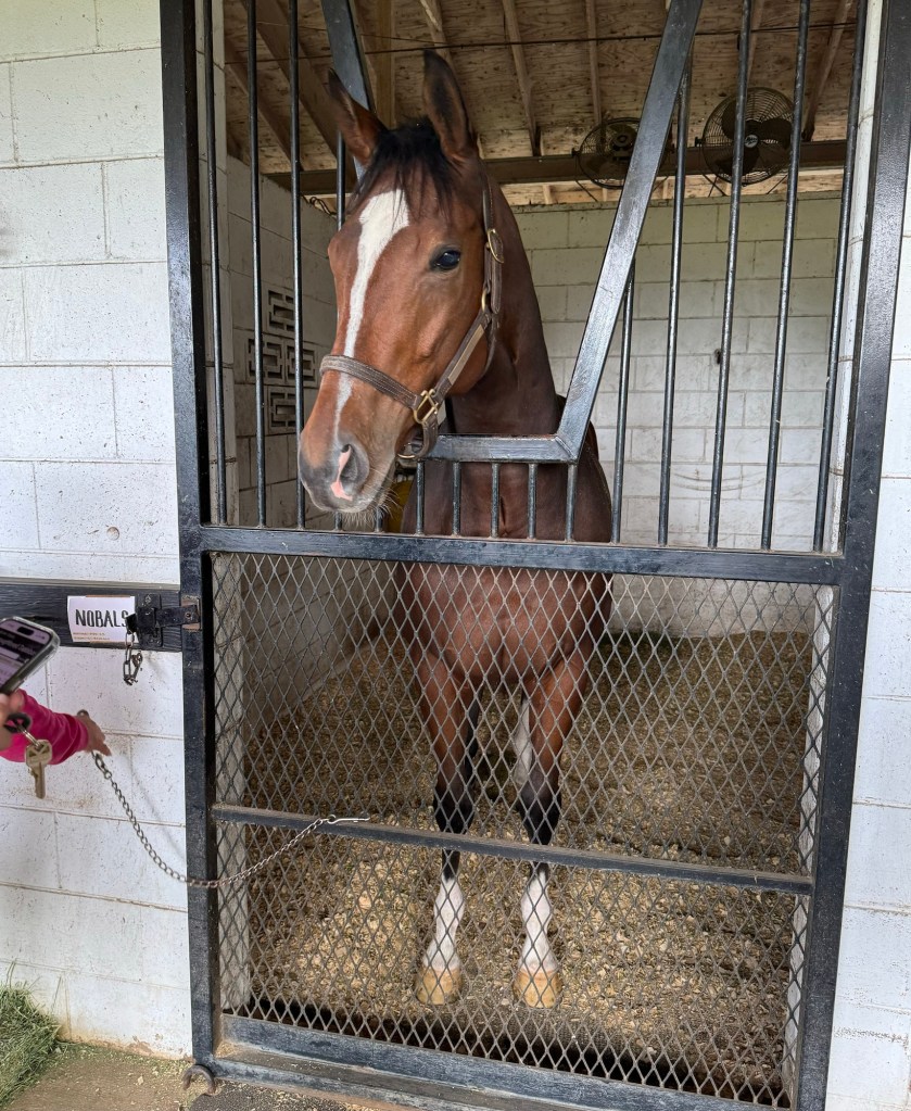 This is Nobals, winner of the 2023 Breeders Cup Turf Sprint. He spends his winters in Ocala in between racing seasons, and he is just the most delightful little animal. He’s won lots of stakes races and $1.5million dollars so far in his career. Super cute and friendly, even if his name is a bit unfortunate (he does indeed have no balls). It was fun to get a tour of the training center and get to see all the horses… there were definitely one or two I’d take home, Nobals being top of the list.