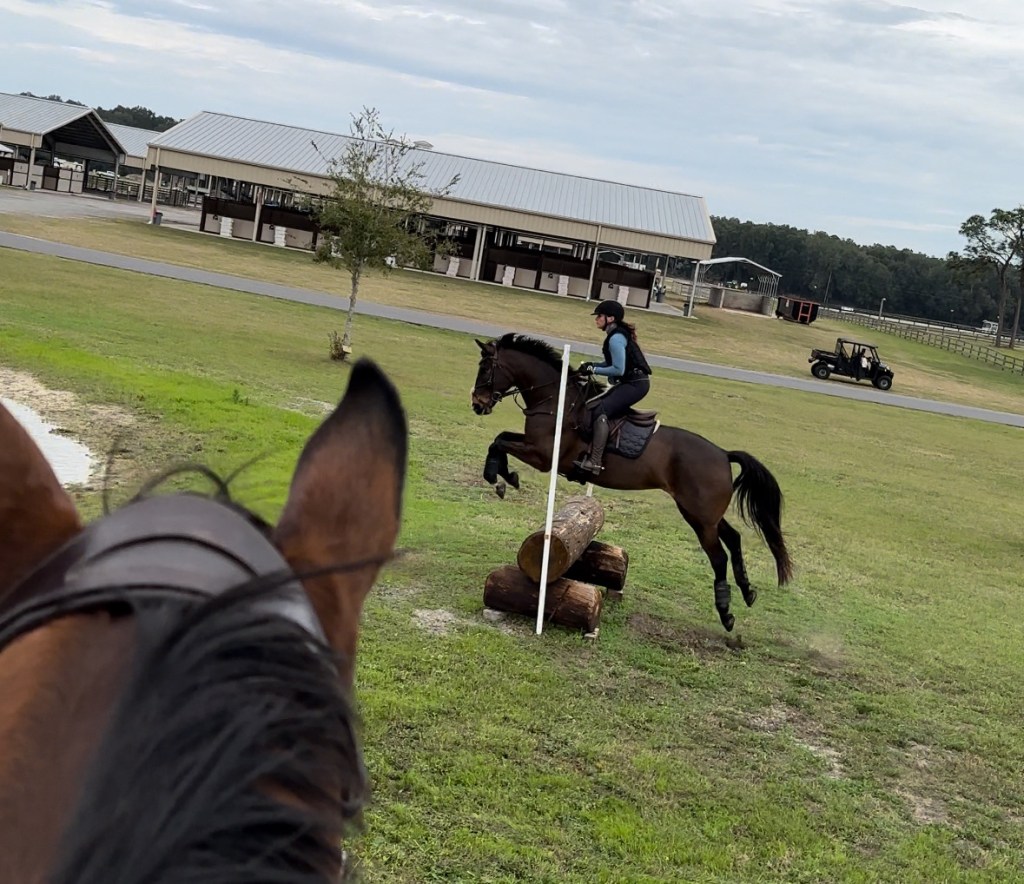 Presto has also been on some adventures… last week he went to Sweet Dixie to gallop (and yeehaw, he was a-gallopin’) and this week he went XC schooling again. Florida Horse Park had a free open schooling day, so like… you don’t gotta tempt me with a free good time. Sarah came with me on Henry and both of the boys got to pop around some fun things.