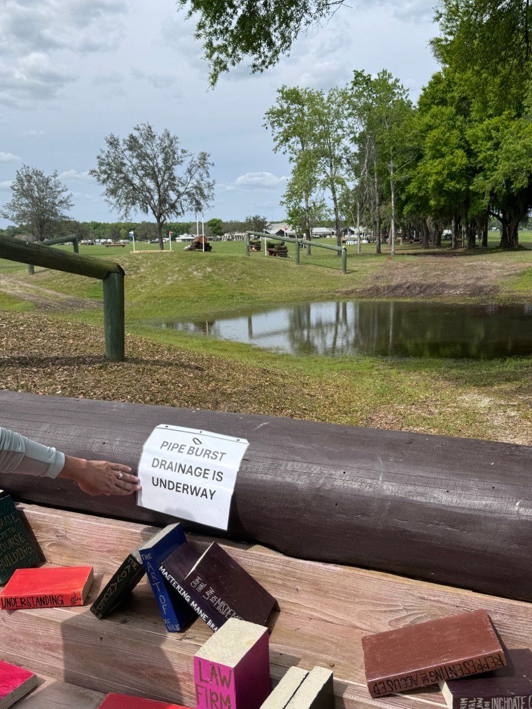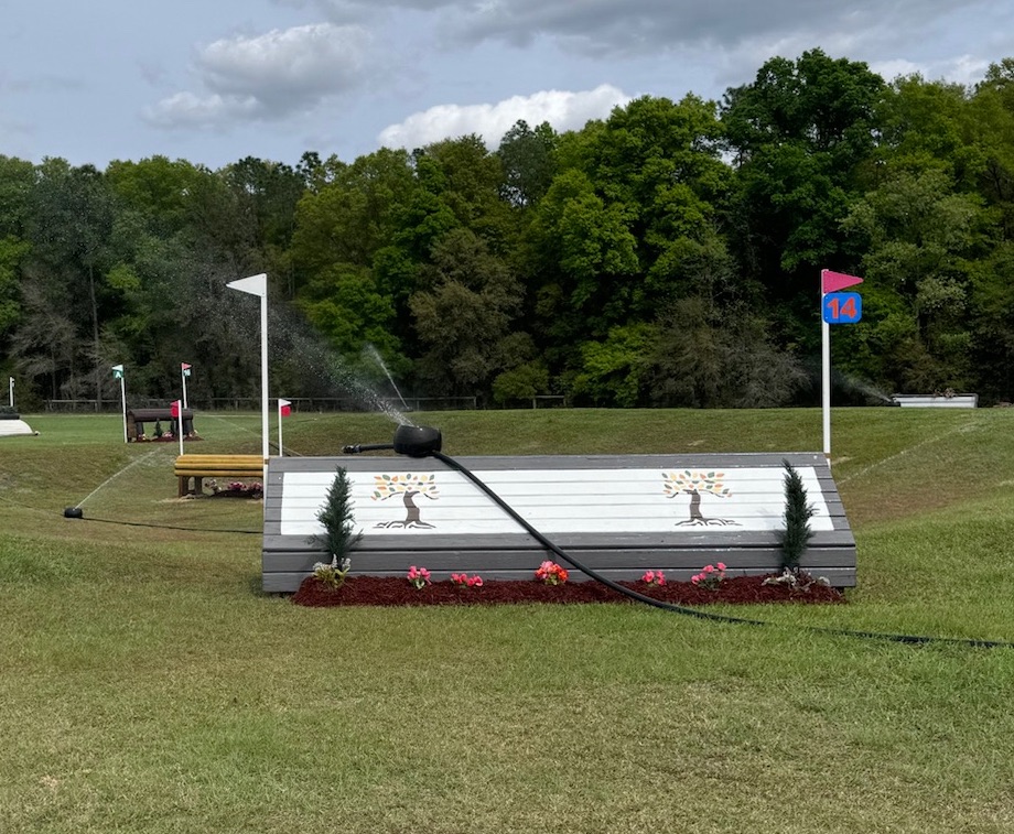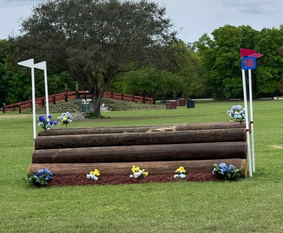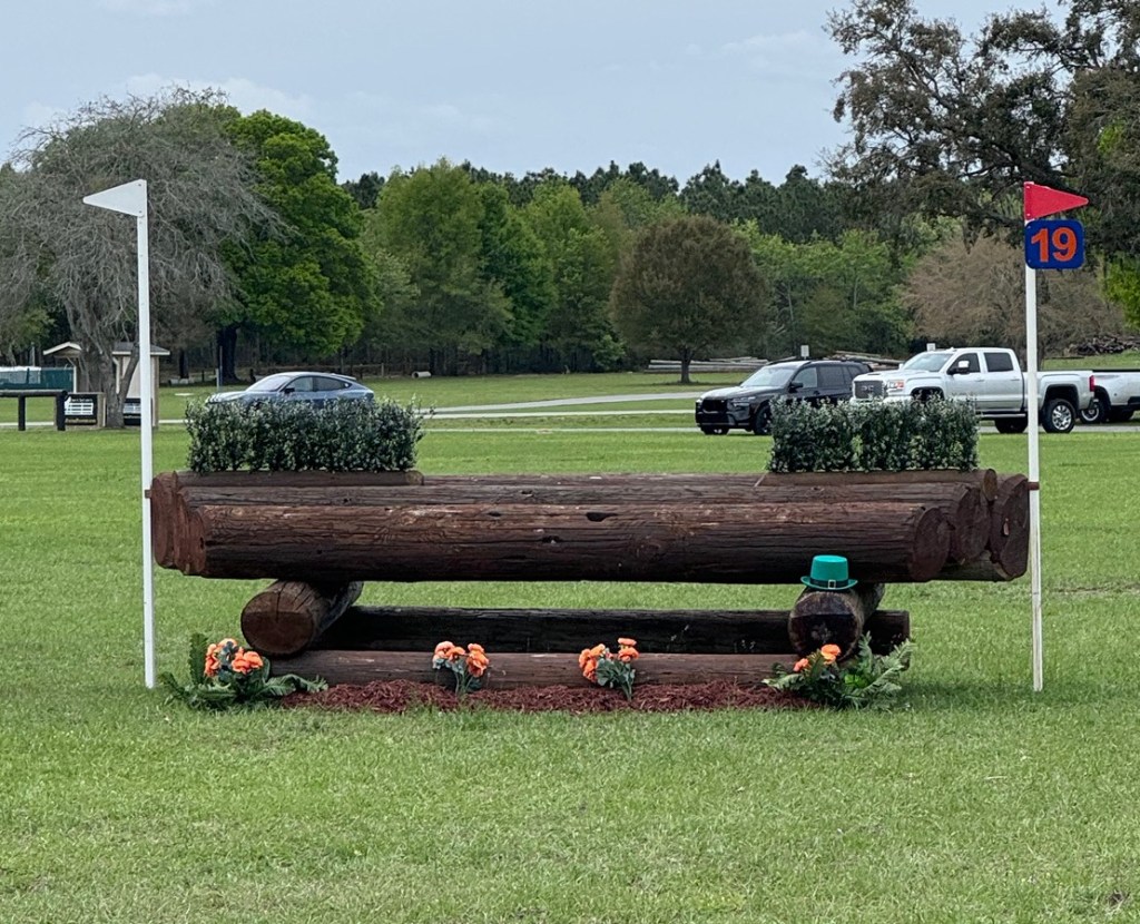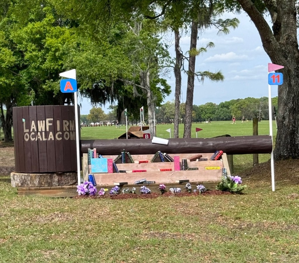 And on to the first crater combo. These two Law Firm Ocala jumps were new to us, we haven’t jumped them before. The first show where they made their debut last year, I remember them being a bit spooky for several people. The faux books on the front side of the first jump are a lot to look at, especially since you headed from light to dark with a downhill landing. I rode positively to that one, but Presto didn’t even give it a second glance. He jumped it and landed with his ears perked, looking for the next. By this point in the course he remembered that things can be harder and come up quicker, and he was eating up the challenge and looking for the next. Exactly what I wanted to feel, him getting sharper and more clever.
