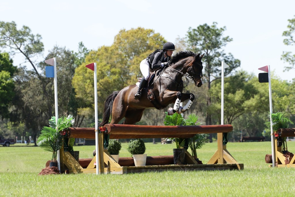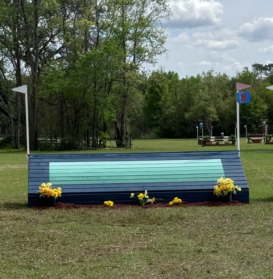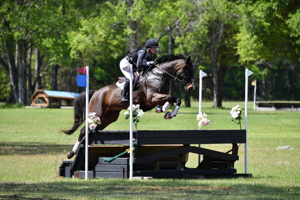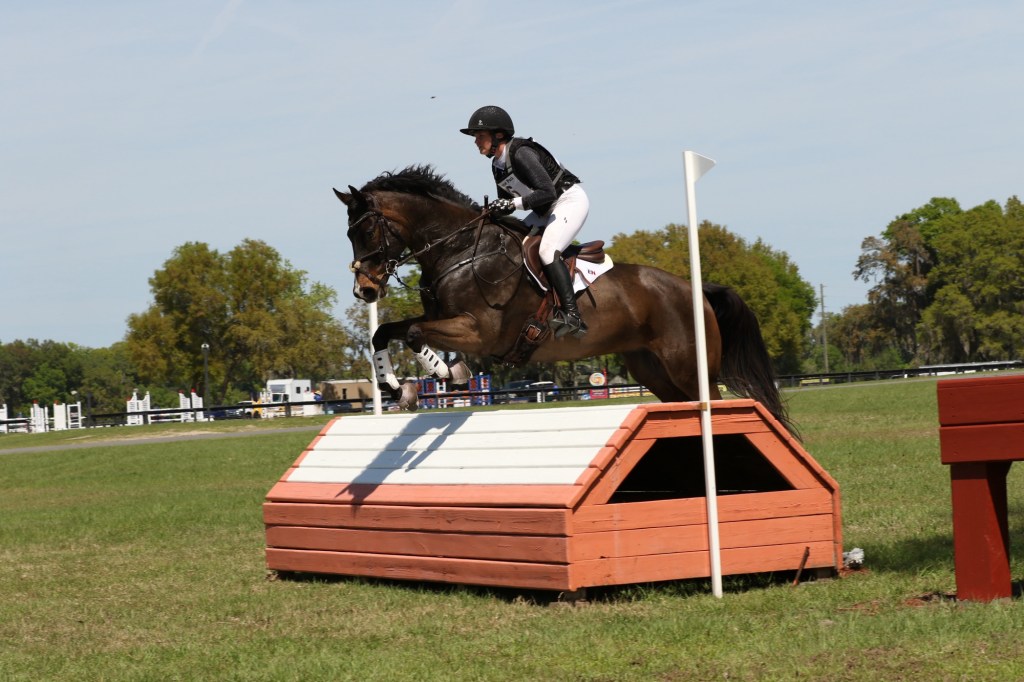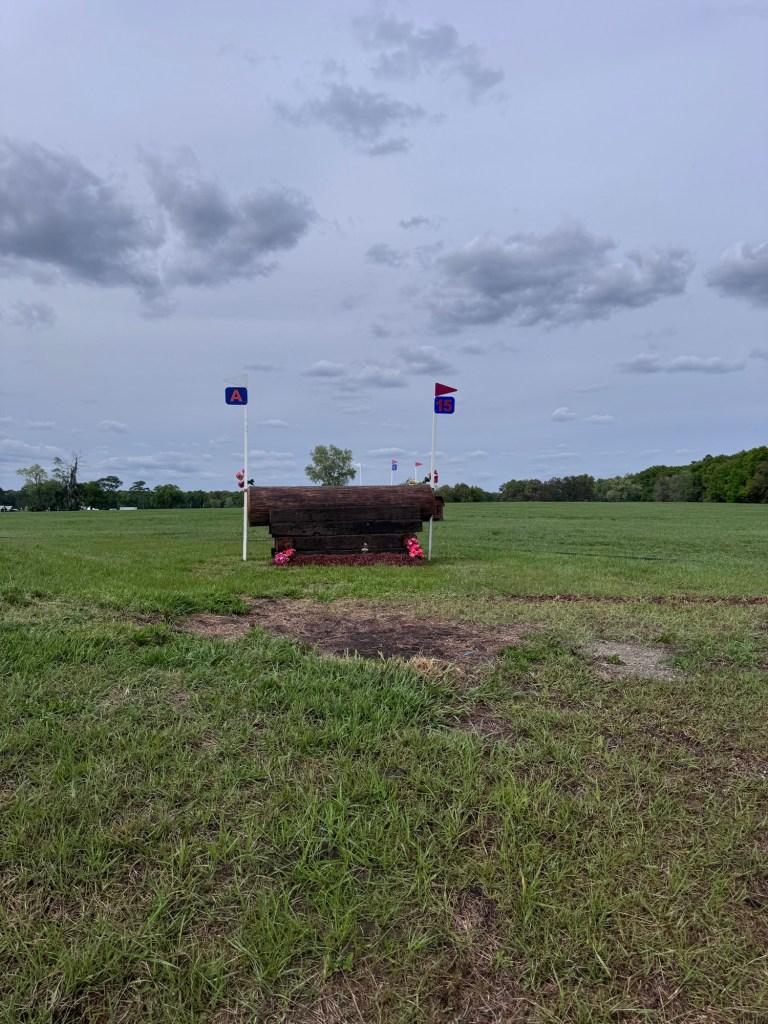 After that we only had one let up fence, a ramp, and then we were at the coffin. What I didn’t like about this combo was that the Training line went straight through and was the obvious path to catch the horse’s eye. Both courses had the same A and B, but Training just went straight ahead 3 strides to a brush at C, whereas we had to jump the ditch and do a YOINK to the left three bold strides to a brush skinny at C. I knew Presto would lock on to the Training C and I’d really have to make sure to get him off that line and onto the Modified line. Megan said to open my rein over the ditch, put my eye on it, and “just get it done”. Grit, it’s what’s for eventingdinner.
