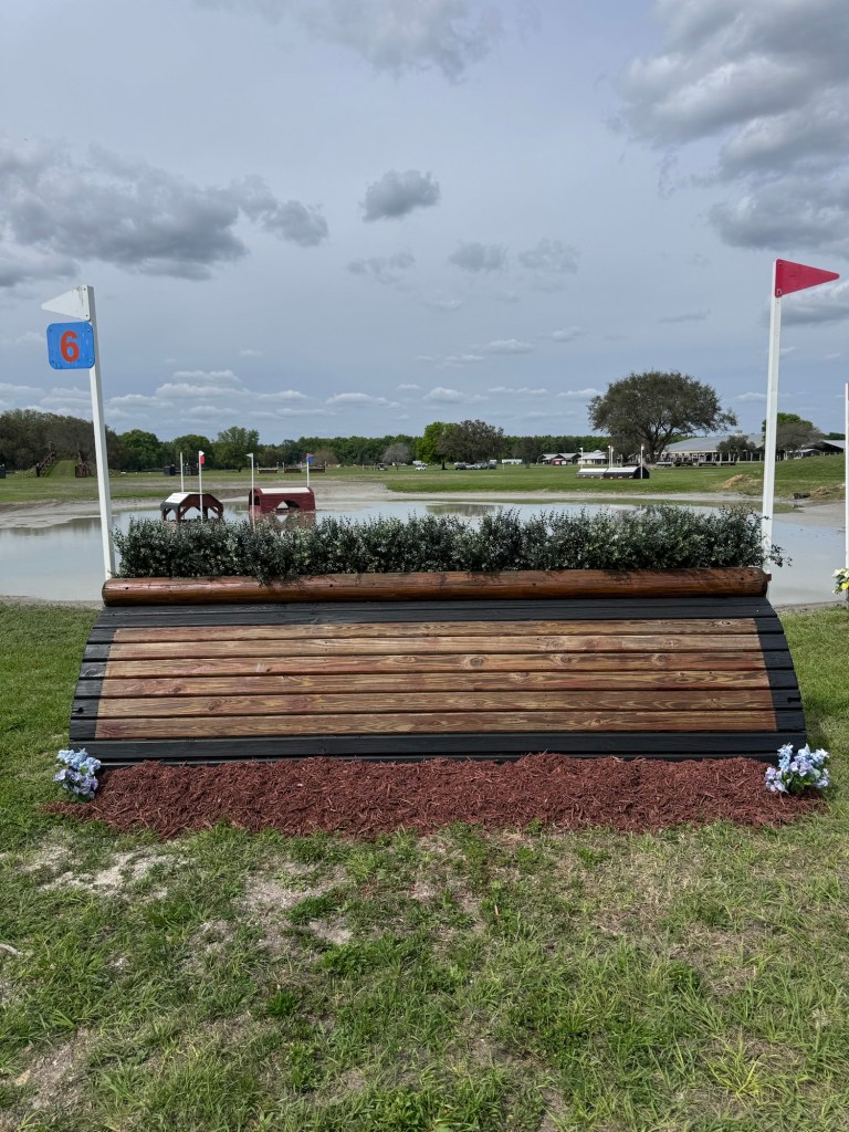 The wagon was offset to the brush in such a way that if you wanted to jump both of them straight-on, you’d have to do a wonky little S curve in between the two. Obviously you need to be straight to the brush into the water at 6, since you had to land and bend left to the skinny in the water at 7. So if you wanted to straighten the approach to the brush without having to wind all over the place, the solution was to jump the wagon angled a bit from right to left, which then created more of a bending approach to the brush.