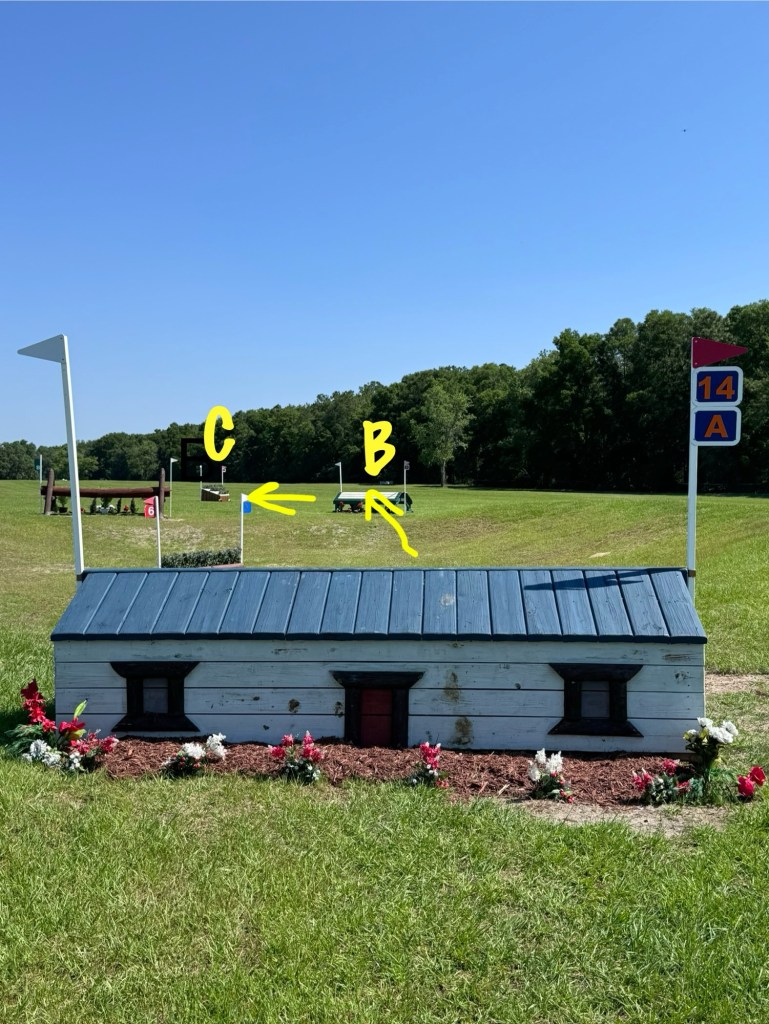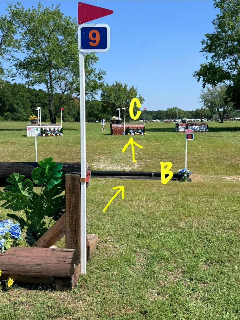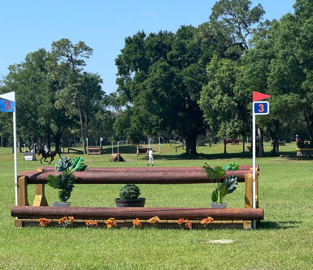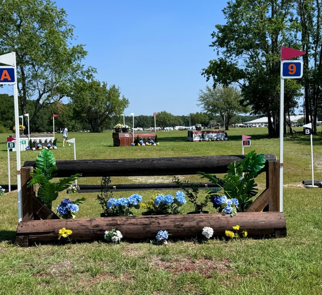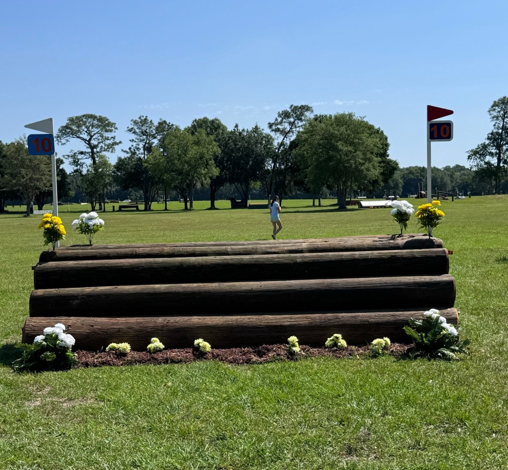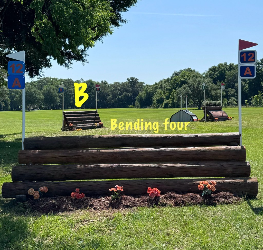 Then we had the log table, which was good, to the next little house thing. Then it was 8 bending strides right to the log stack, with four bending strides left to the skinny. This question rode really well if you picked your line from the beginning and really stuck to it, but I saw it do some gnarly things to people who didn’t make a decision or tried to change their mind. Presto was really good and rideable through that question.