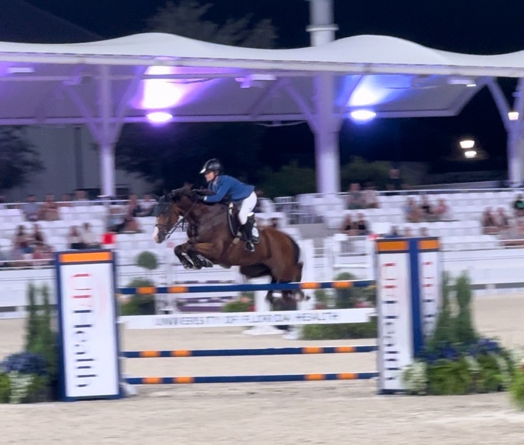 Fairly simple exercise, but not necessarily easy. The idea was to trot the poles, do a few steps of a bit of a leg yield feeling, canter, put the haunches a bit to the inside, go to the jump, and then trot again right after, making sure to keep their shoulders up so they were balanced when you got to the poles again. Everything happens pretty quick, so there wasn’t any time for a late or sloppy transition anywhere. Really there were only about 10 strides of canter total, including the jump. I liked the exercise a lot.