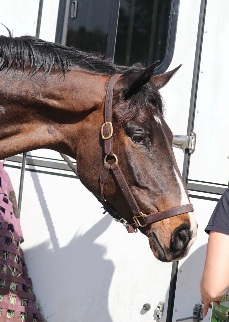 It was a hot day (as you can see from the lather on him in the pics) but Presto handled the weather great, his TPR came down fast, and he was cooled down within a couple minutes of standing under the hose. I always run him in FLAIR strips but especially when it’s hot like this, and I also tried Gallagher’s Water to see if it would encourage him to drink more (he did drink, but he was undecided as to how much he liked the GW. Jury is still out.). Either way, considering how frisky he was the next morning, I don’t think his long show day took much out of him, which is also great to see.