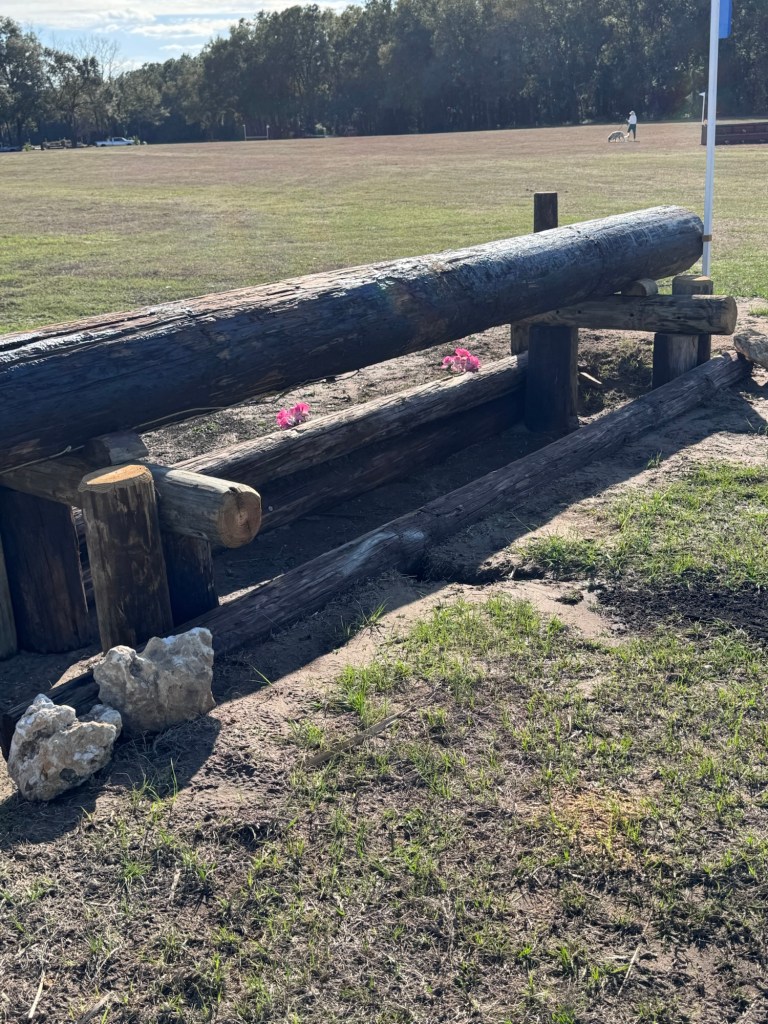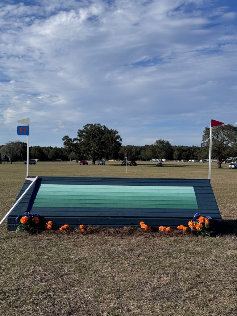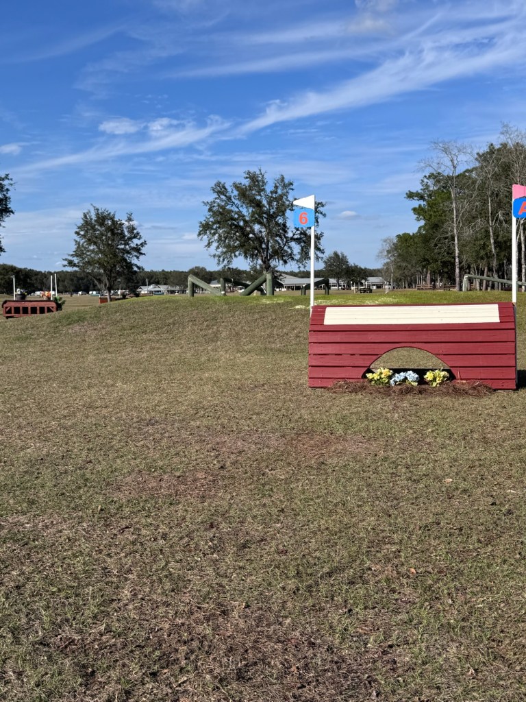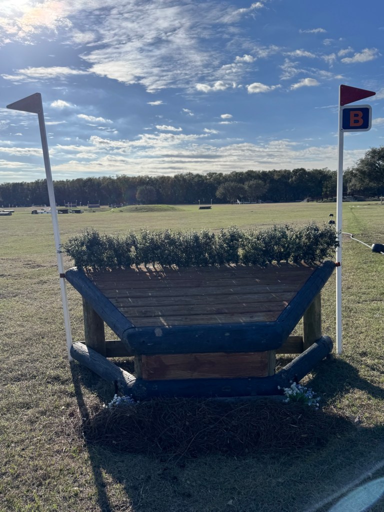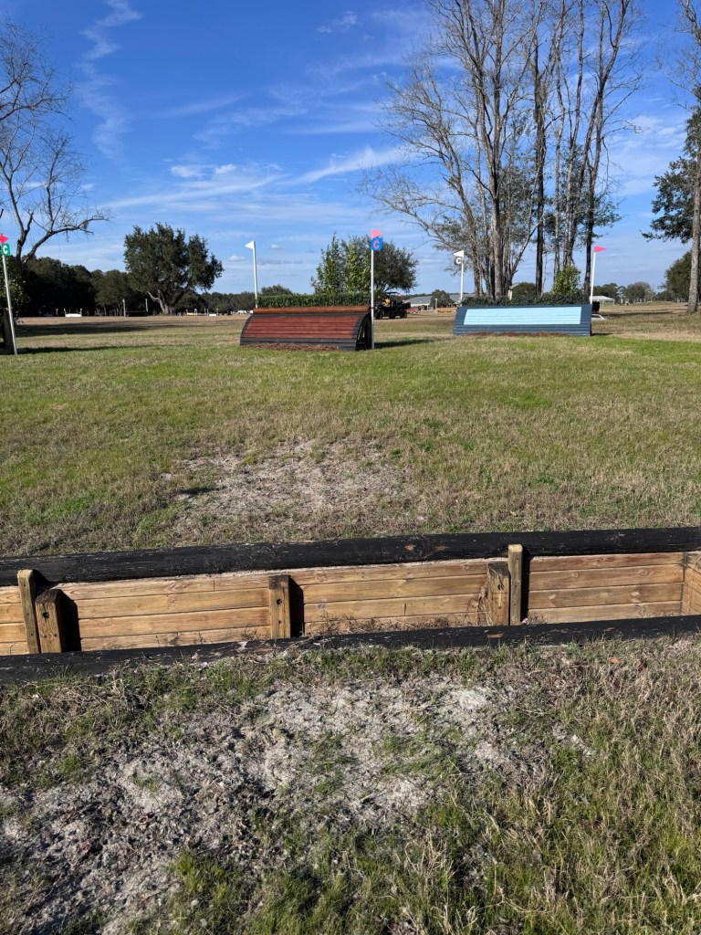 FHP was watering and aerovating like crazy! The ground felt great.decent size jump 2, shared with Plog box with only 8-10 strides to 4AB4 strides A to B skinny table at B was slightly angledstraightforward log table6AB – the crater. Steep downhill after A, up through the crater with 90 degree turn left to BB was a cornerthe MIM table8ABC, the coffin.2 downhill strides from A to B, then two uphill strides to an angled brush at C9 – a small but BRAND NEW trakehnerthey really dug a wholeass new ditch in the middle of the field, man10 A- house in the water, 5 or 6 bending strides to… 10B, a skinny logthis one is often the last jumpthe big collapsible table I used to not be able to make direct eye contact with13A, house at the top of the crater – you can see B up on the lip on the other side, the skinny tablethar she blowsa random skinny brush chevron in the middle of nowhere15A, the second water. Log ramp with downhill landing, through the water to..15B, a skinny log ramp16A, a small house thing, 6 bending strides to B (you can see it to the right)16B- skinny brush17 – nice wide, super sloped ramp